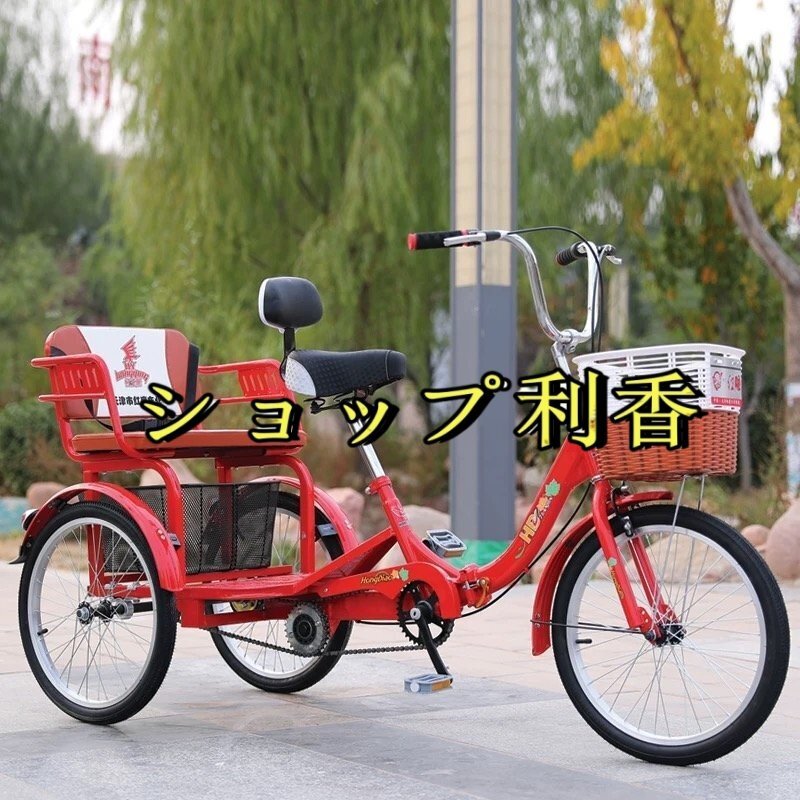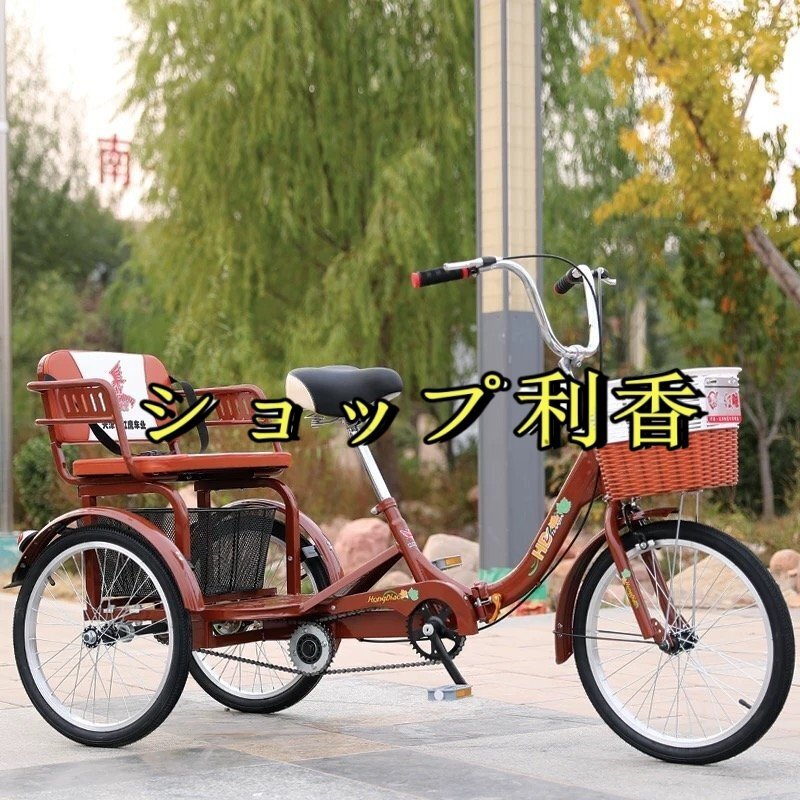 新入荷☆20インチ三輪自転車 座席高さ調節可能 アショッピングバスケット付き 大人用 高齢者用 三輪車 座席付き 背もたれ シートベルト 122