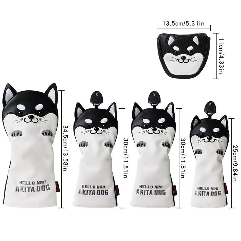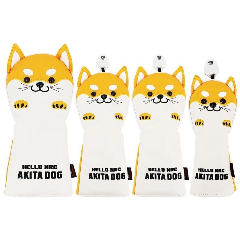 4点セット● ゴルフ ヘッドカバー ドライバー DR ウッド フェアウェイ FW ユーティリティ UT 秋田犬モデル460cc防水かわいい☆2色選択/1点