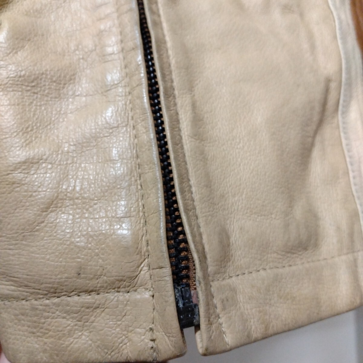 ・状態についてですが、写真からはわかり辛いですが細かい斑点のような黒いカビ汚れが多数あります。 保障は致しかねますが、レザークリーニングなどでそれなりにきれいになるかとは思います。 ジッパーで着脱するライナーがあったようですが残念ながら欠品しています。 その他細かい汚れ、傷、擦れ等多数ですが、着用の妨げになるようなものはおそらくはないのではと思われます。