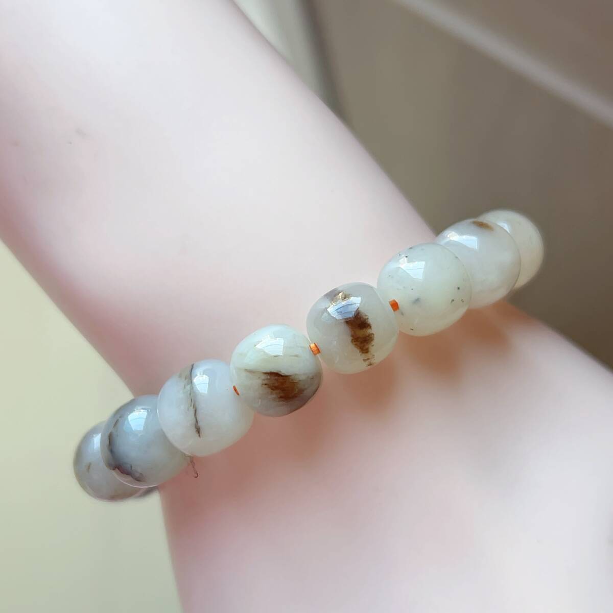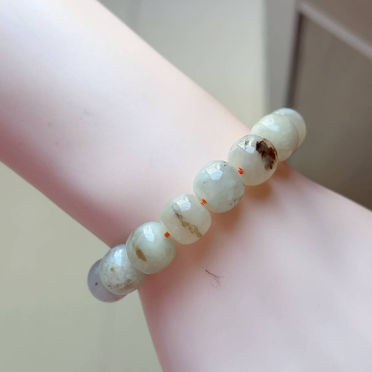 ◇和田玉◇ブレスレット◇一線天入り◇パワーストーン◇天然石◇翡翠・ヒスイ◇巾着袋付き◇プレゼントにも 034B143