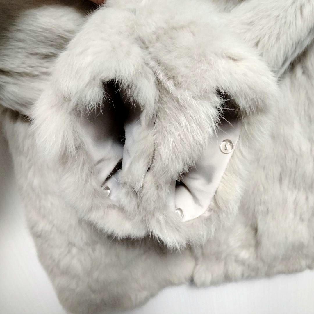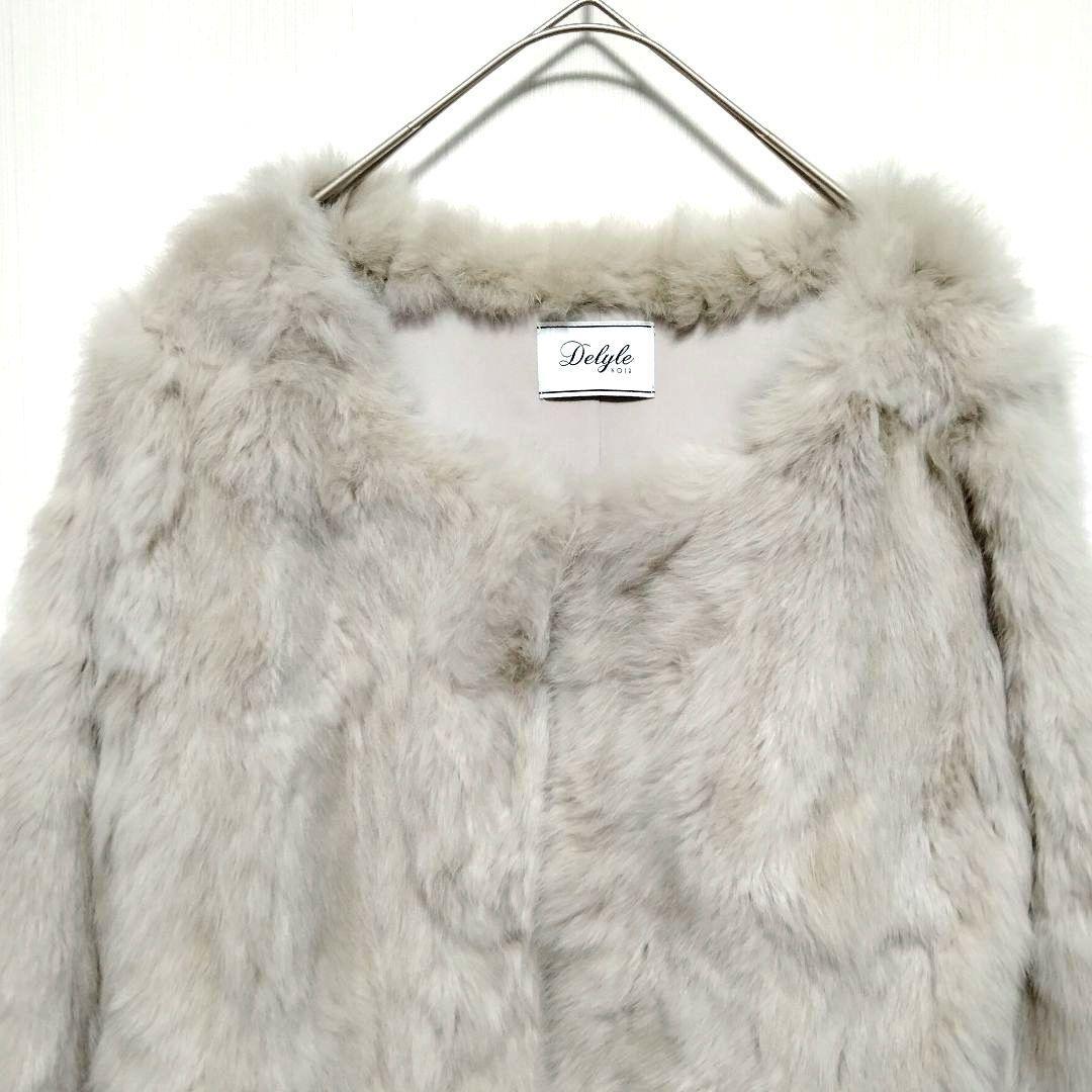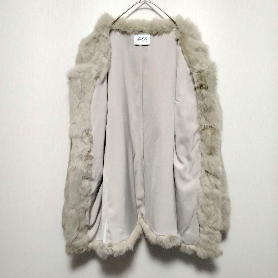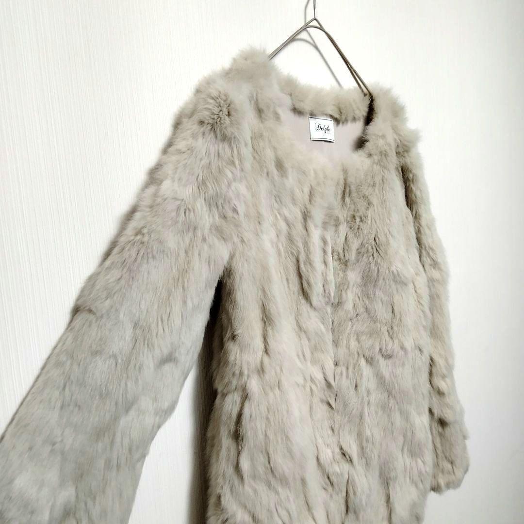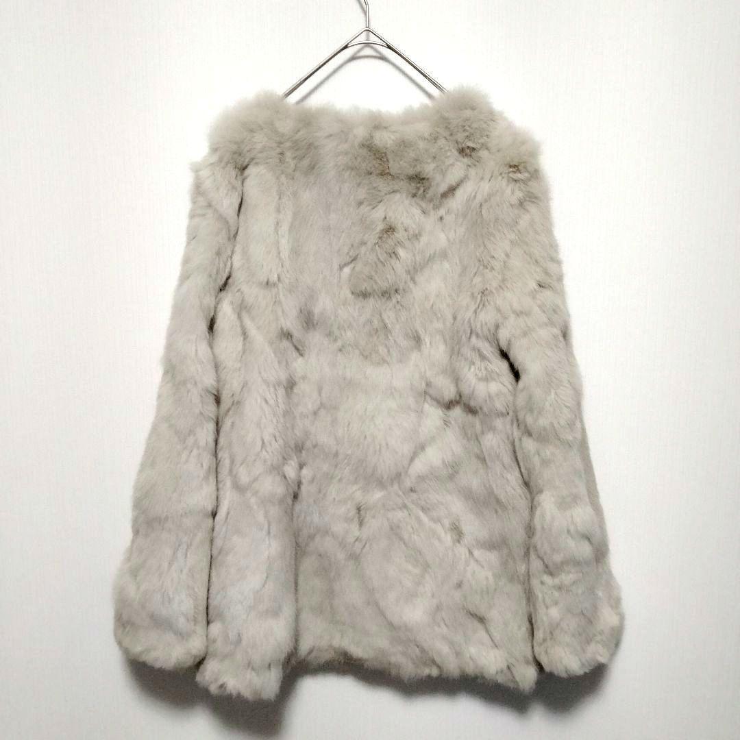ラビットファー ファーコート 毛皮 ノーカラー ミドル丈 ホワイト ベージュ