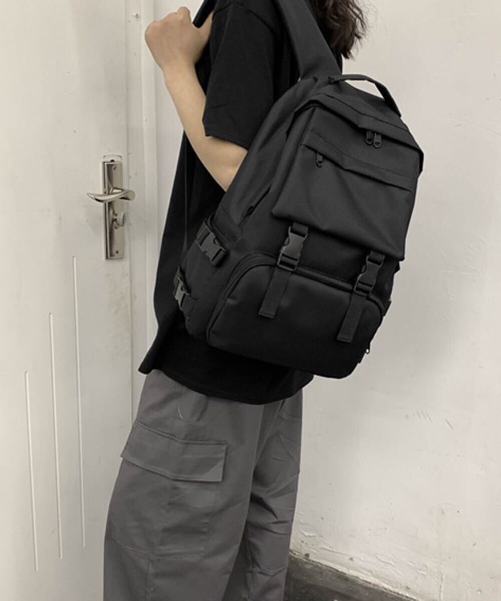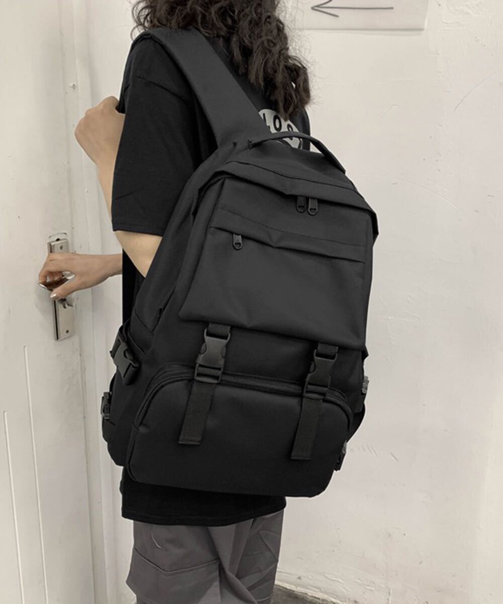 A4収納可 韓国風/黒リュック 多収納/マザーズリュック