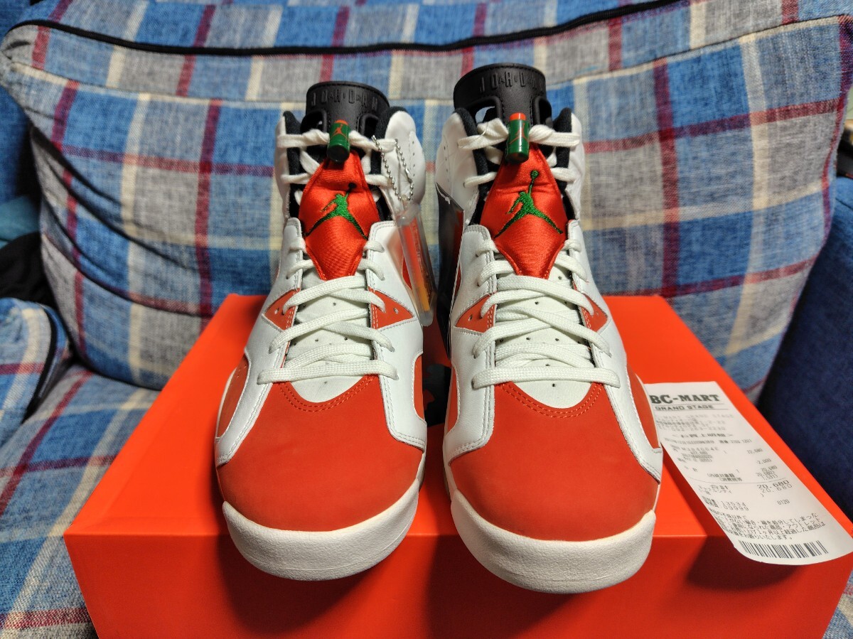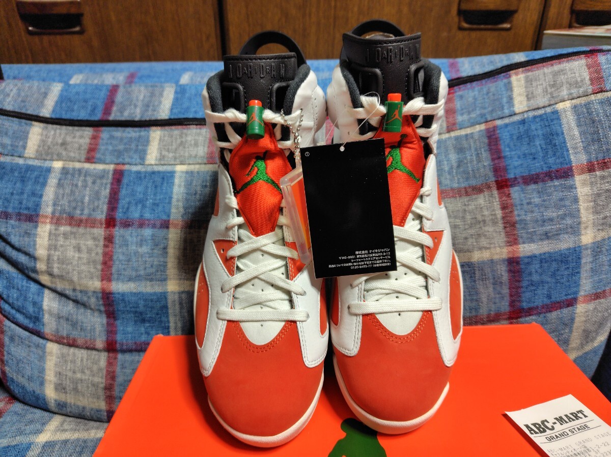 【製品名】AIR JORDAN6ゲータレード【サイズ】28cm【色】オレンジ×白【付属品】箱、黒タグ、中紙、キーホルダー、レシート【状態】新品未使用となります。写真にて判断願います。【発送方法】ゆうパック元払い【最後に】希少なゴールデンサイズの国内正規品となりますので返品、入札取り消し不可でお願いいたします。他にも多数AJ出品中です。当方禁煙です。
