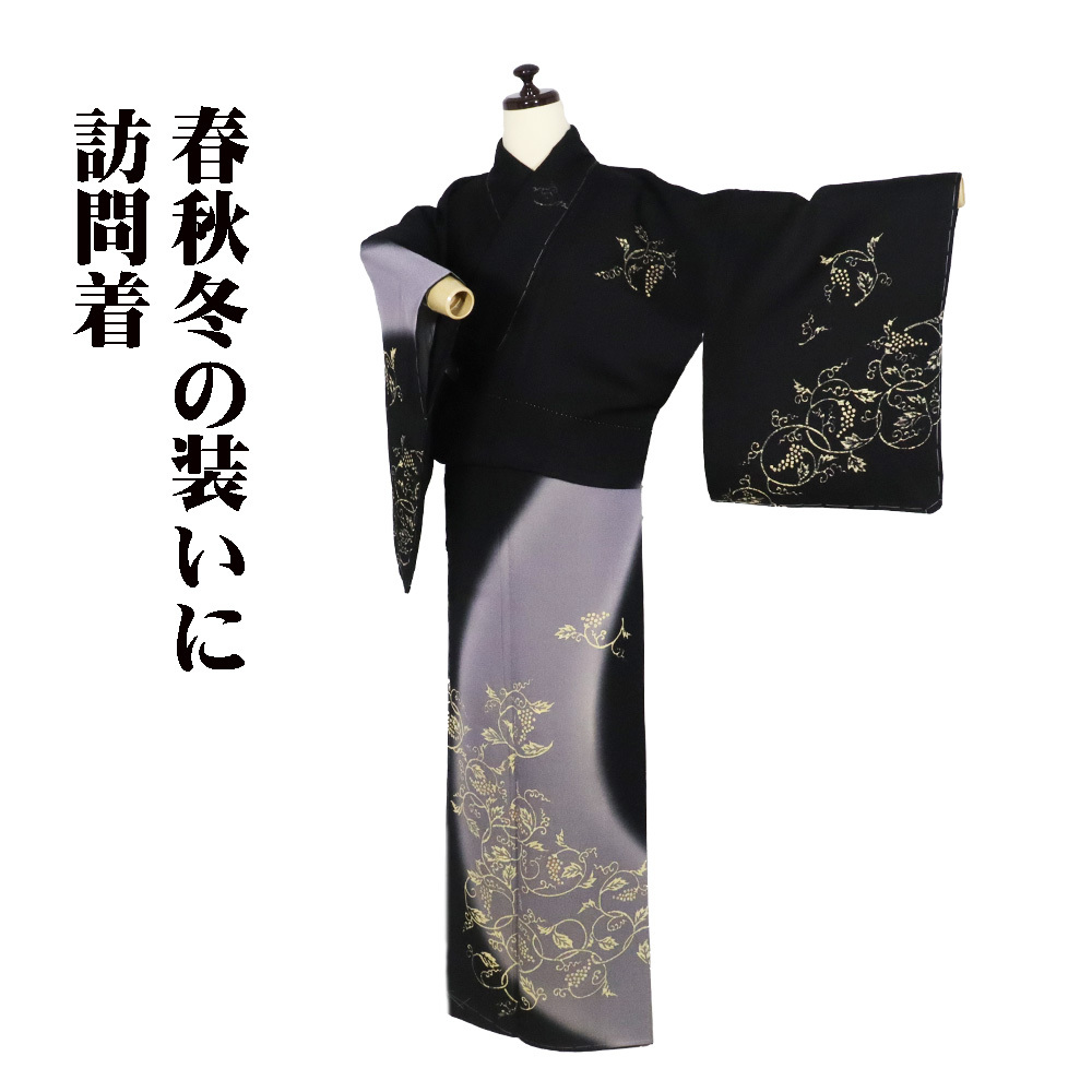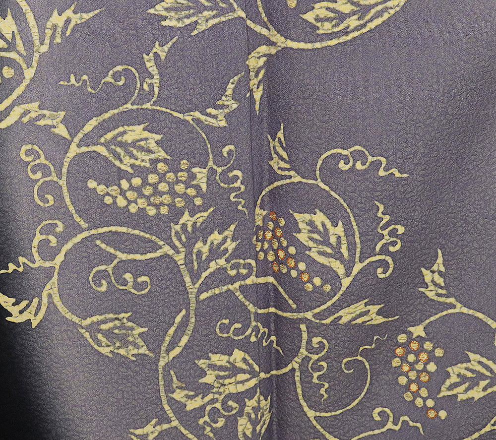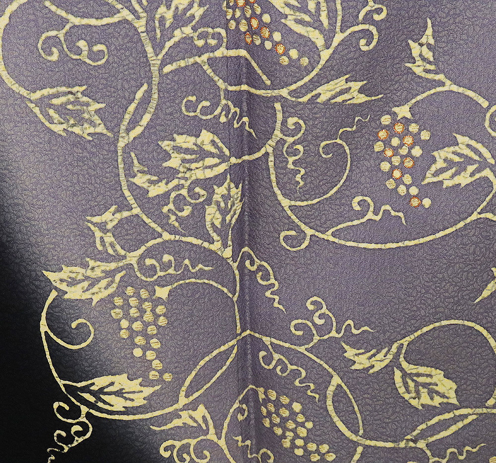 | 色・柄 | 友禅訪問着 袷 丹後縮緬地 濃い紫(黒紅色)・渋い薄紫(薄色)暈し地 地割れ模様地 山ぶどう (写真では上手く色が出ない場合があります。ご了承下さい) |