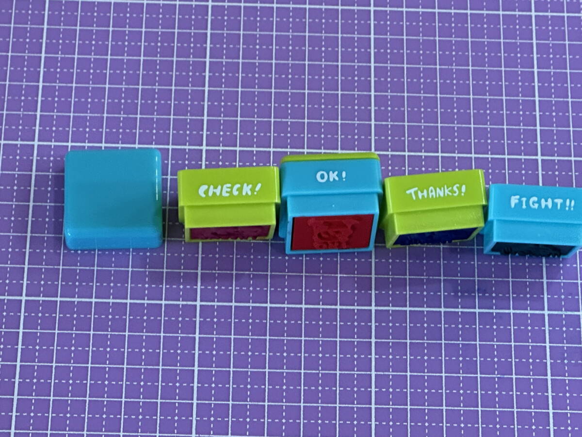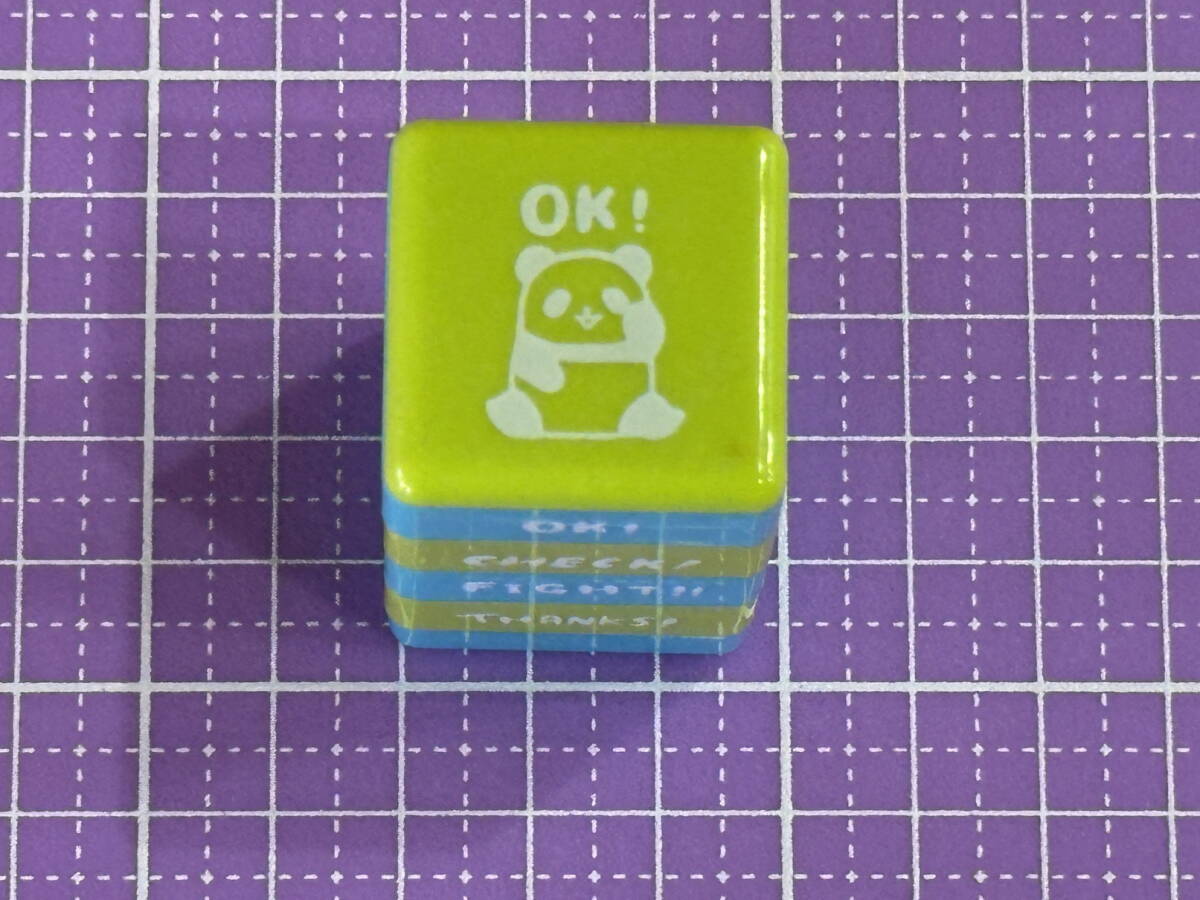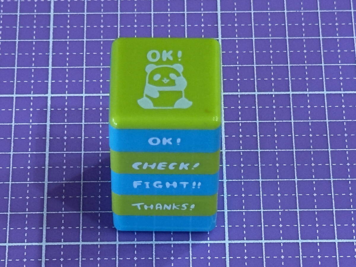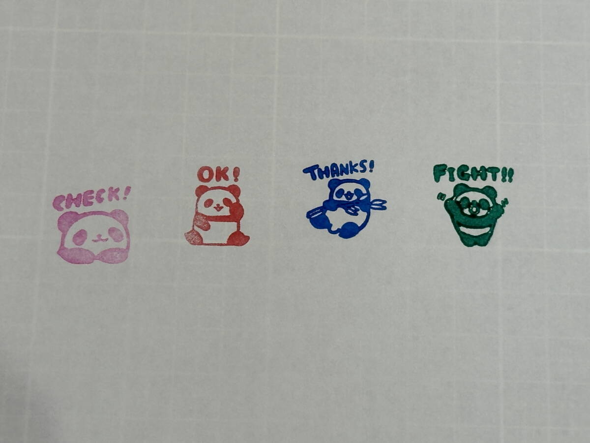「パンダ」のチェックスタンプです。4種類が重ねて保管でき、インクもつける必要がなくそのまま押すことができます。スタンプの大きさ、印面、状態につきましては商品画像をご覧になるかご不明な点はお気軽にご質問ください。(実線のマス目1目盛りが1cmです。)お送りするものは写真にあるものが全てです。