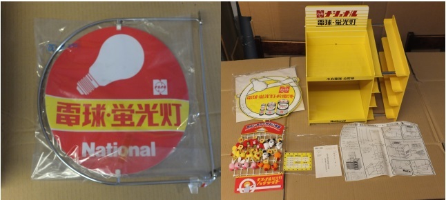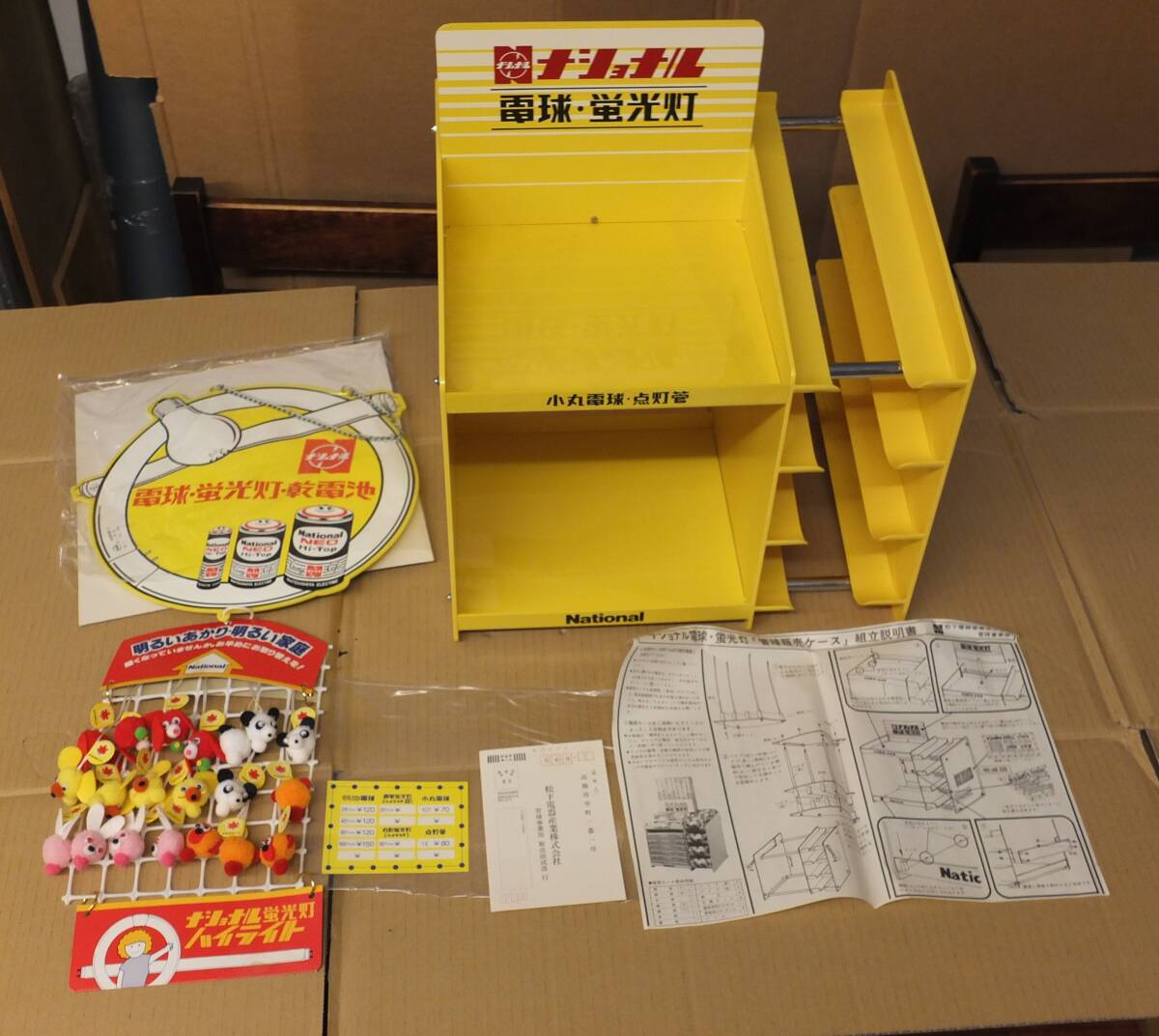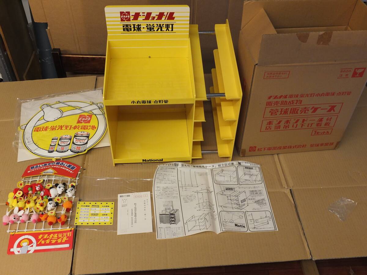 【未開封品】National 電球 陳列棚 & 吊り下げPOP &回転看板 セット! ラック 店頭用 陳列棚 昭和レトロ 当時物 ナショナル