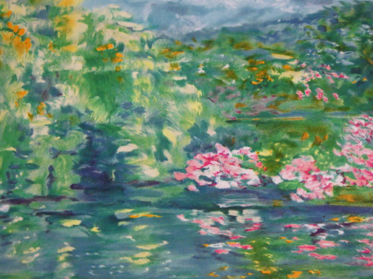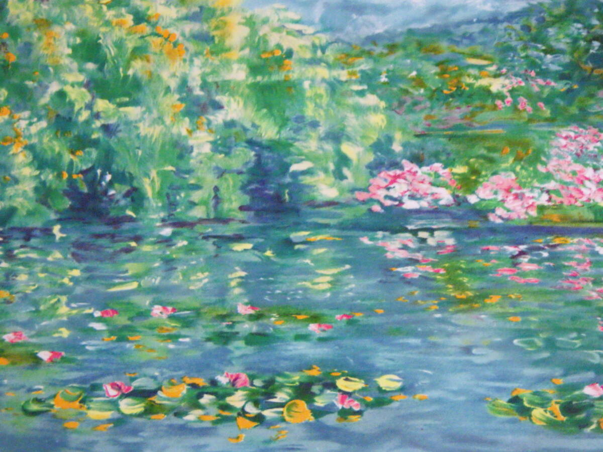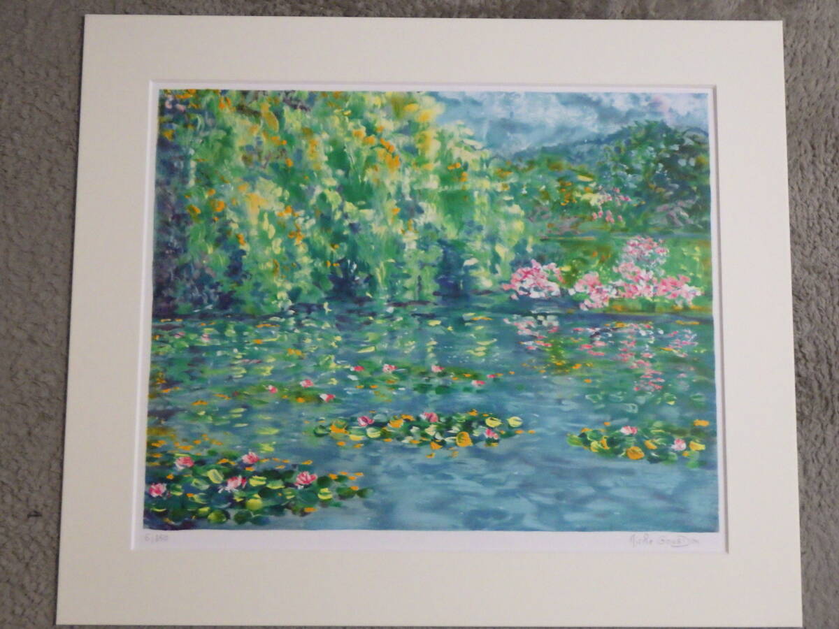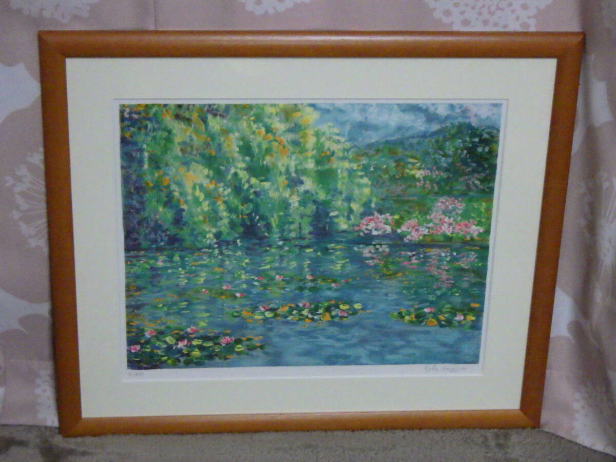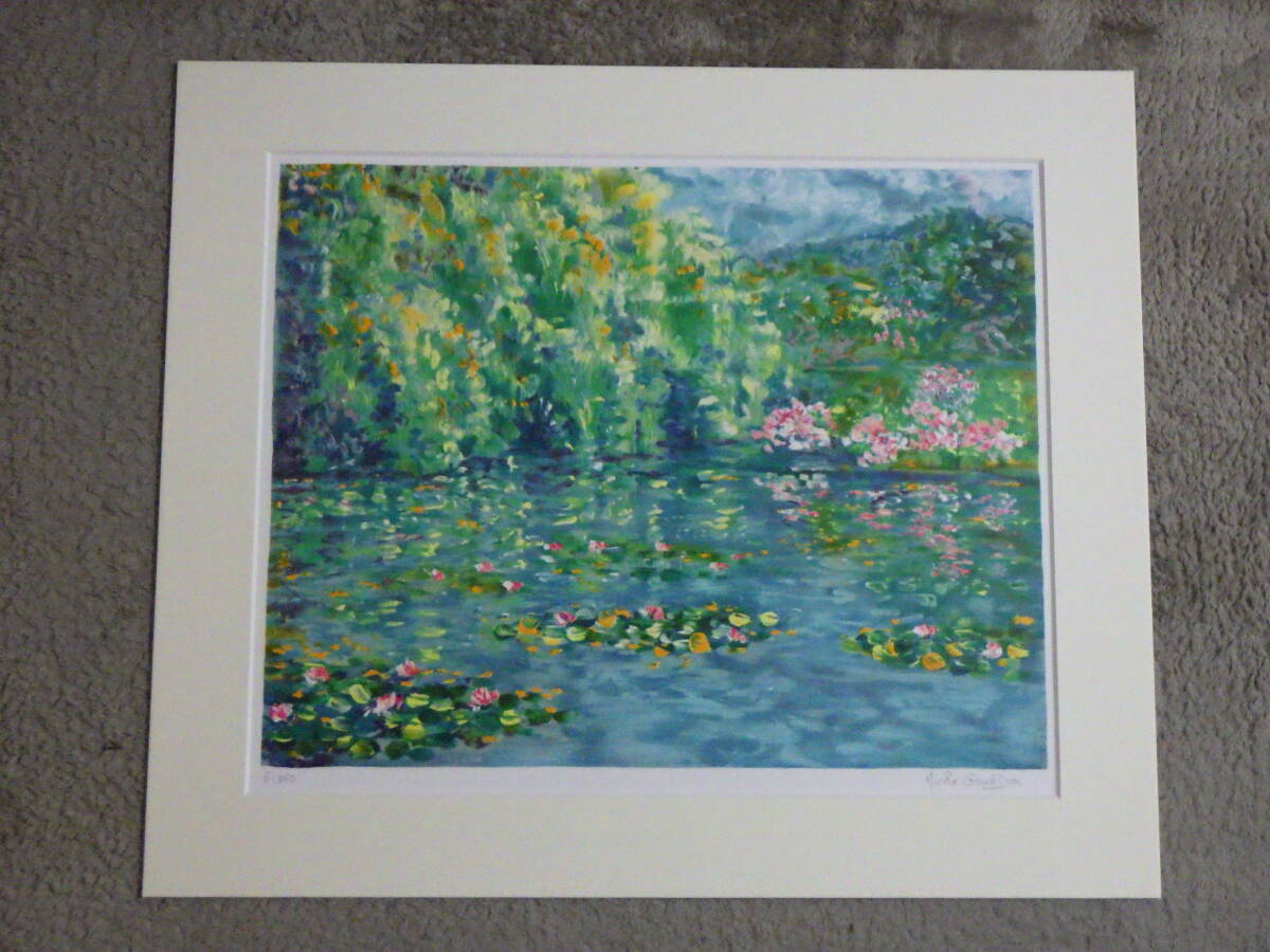 真作 ニコール・ゴードン 版画 リトグラフ 睡蓮の池 水面の色彩 350部限定 6/350 自筆サイン 額装 箱付き フランス画家 Nicole GOURDON