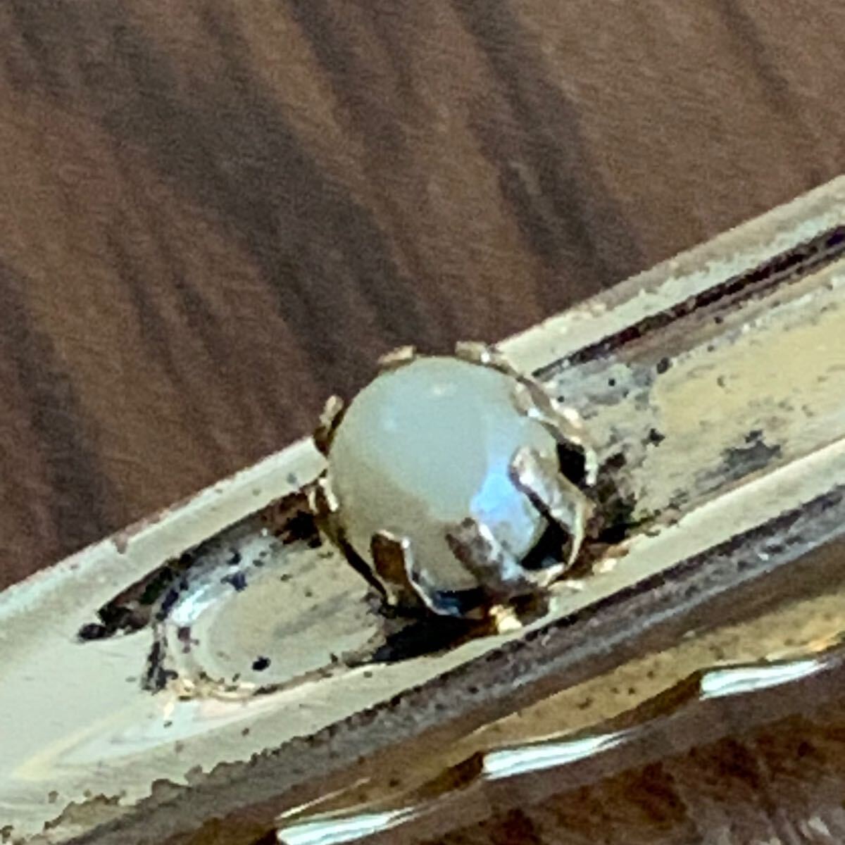 ゴールドトーンにフェイクパールのデザインです。