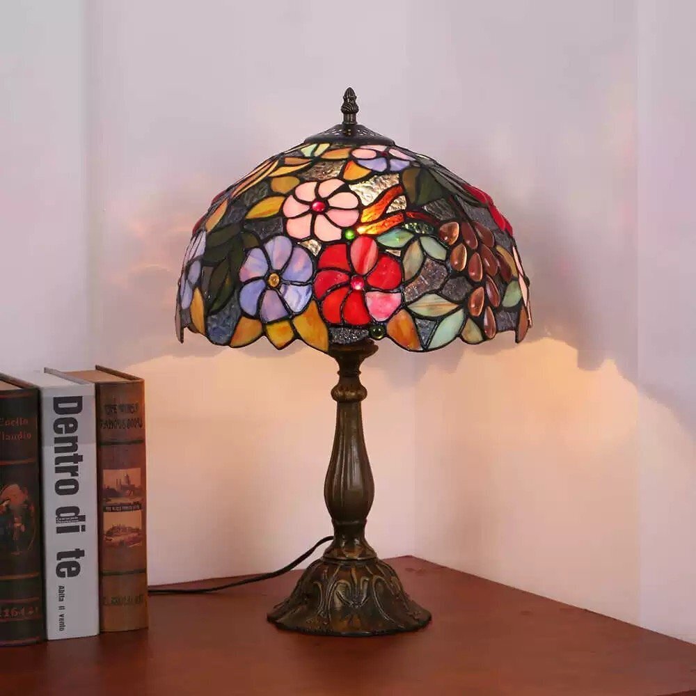 ステンドランプ ステンドグラス グレープ 花柄 照明 レトロな雰囲気 ティファニー技法 デスクライト室内装飾