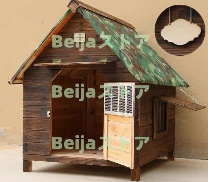◆高品質◆小型犬用 犬別荘 ペットハウス 犬小屋 豪華別荘 ハウス 屋外 庭用 防水 窓 ベランダ 日よけ 表札 屋上ズックカバー付属