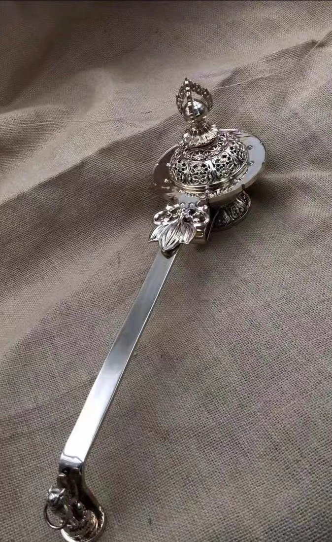 柄香炉 密教法具 寺院用仏具 摩尼寶珠柄香炉 真鍮製 密教で使われる仏具長さ39.5cm