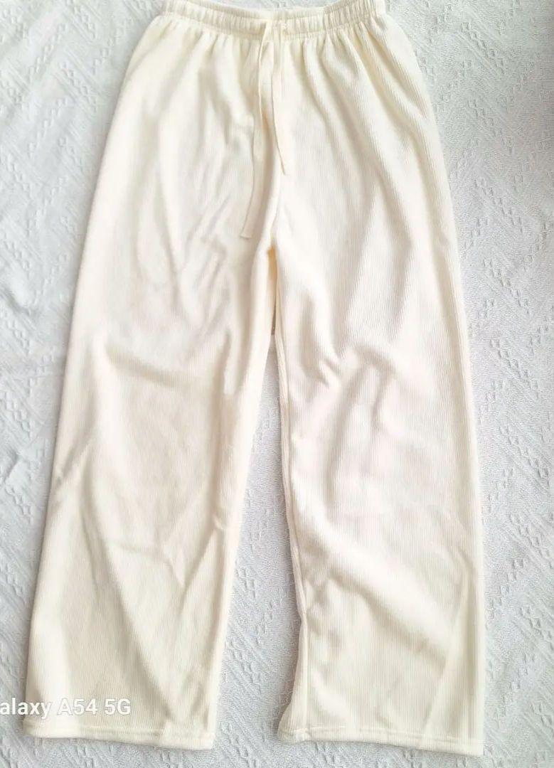 裏起毛ワイドパンツ カジュアルパンツ 極暖 防寒 コーデュロイ風 アイボリー