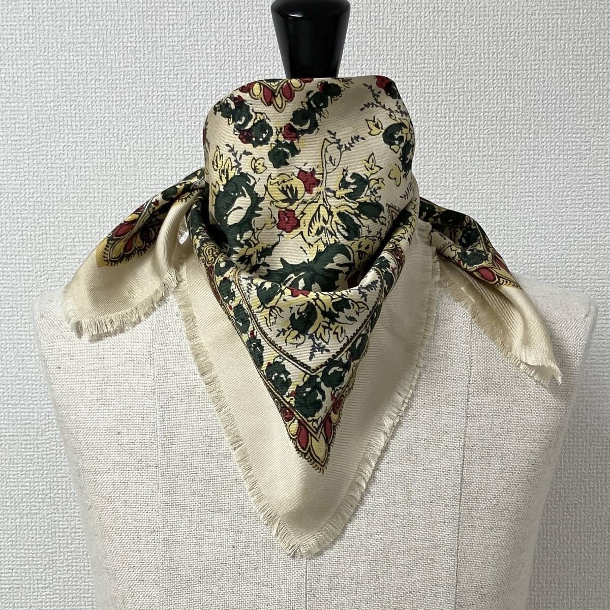 本人期 2009SS NumberNine ローズ 花柄 シルク スカーフ アイボリー系 ナンバーナイン ストール 薔薇 archive 4080231