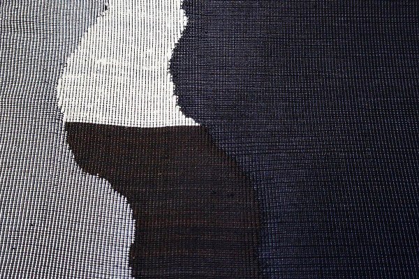 グレーとダークグレーに織り分けられた紬地に、波模様があしらわれた袋帯です。 モノトーンのシンプルでお洒落な一本です。 全通柄です。 |