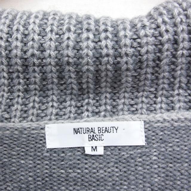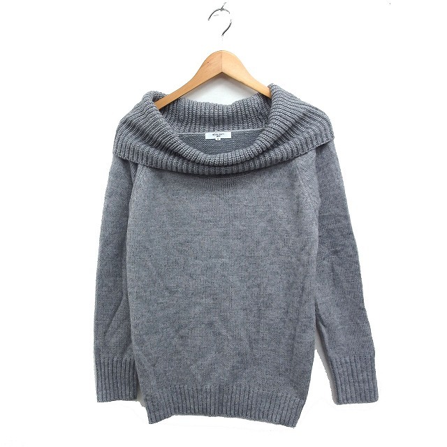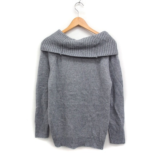 ナチュラルビューティーベーシック NATURAL BEAUTY BASIC オフショルダーラップ ニット セーター 長袖 無地 M グレー 灰 /FT5 レディース