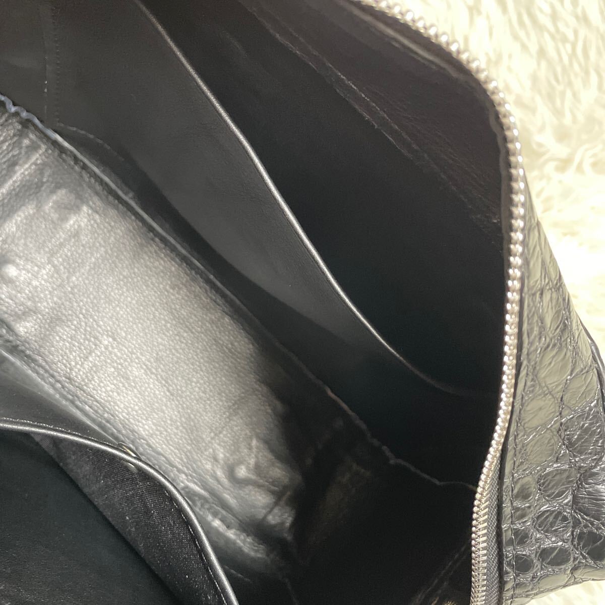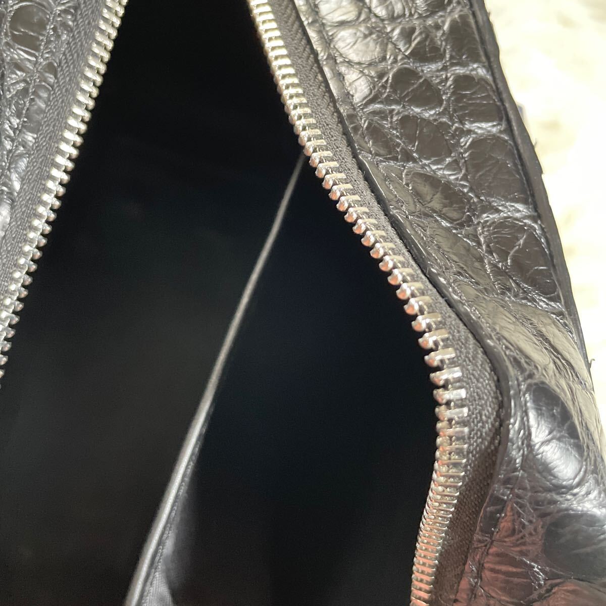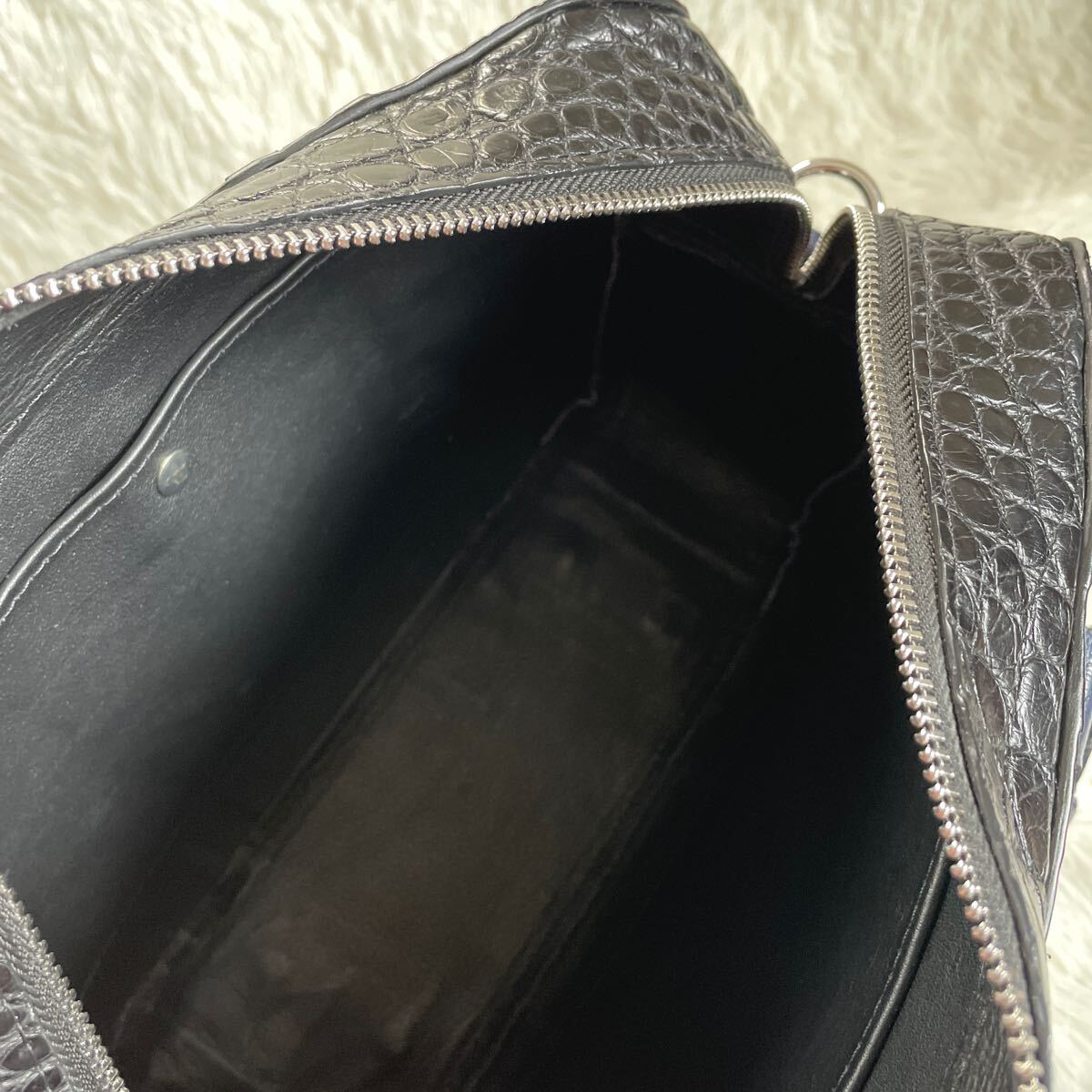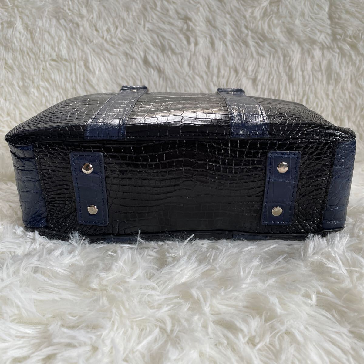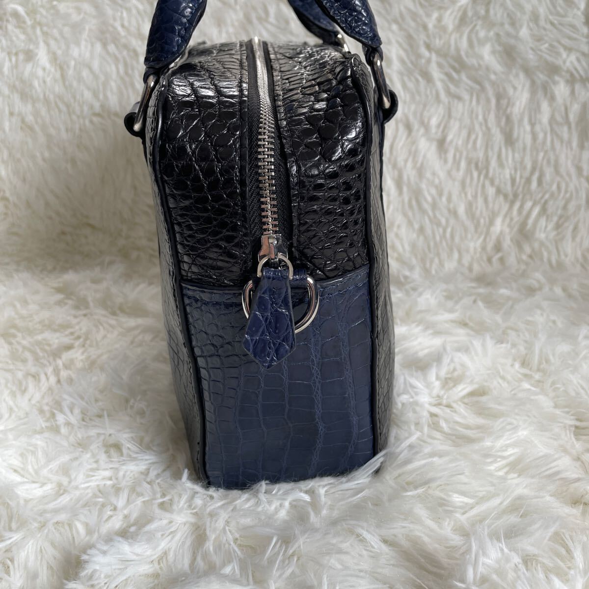 落ち着きのあるネイビー色を外装に、そして内側は牛革で仕上げており、底もしっかりとした作りにのなっております。また、クロコハンドルは持ちやすく握りやすくなっております。