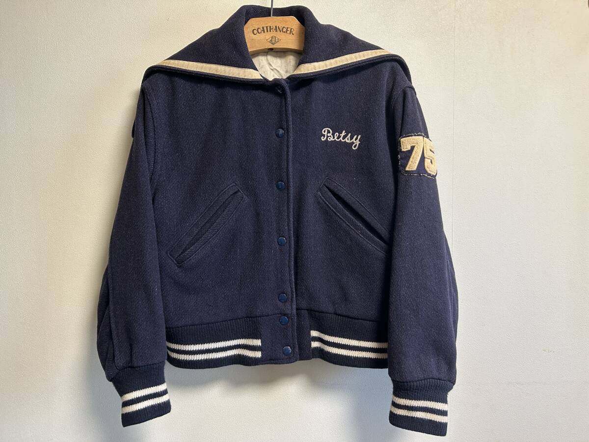 50s 60s Unknown ヴィンテージ レディース 古着女子 セーラーカラー ネイビー アワードジャケット スタジャン スタジアムジャンパー