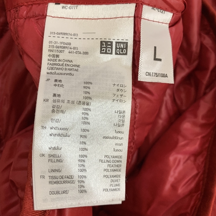商品名 → ユニクロ UNIQLO ウルトラライトダウン ジャケット フード ジップアップ ナイロン レッド 赤 L