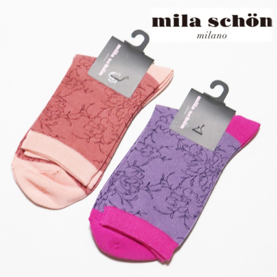 | 《mila schon ミラ・ショーン》新品 花柄 ソックス 2足セット 靴下 22~24cm プレゼントにも S1156 |