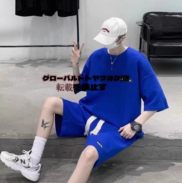 夏 カジュアル 半袖シャツ ショートパンツ 韓國ファッション セットアップ 上下セット メンズ グレー XL