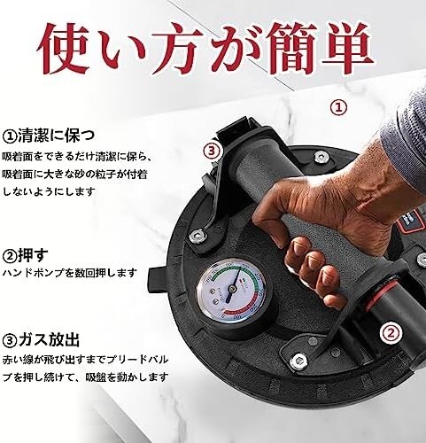 【新品送料無料】Howhite バキュームリフター 強力吸着盤 目視圧力計付き サクションバキュームカップ 耐荷重400kg 吸盤
