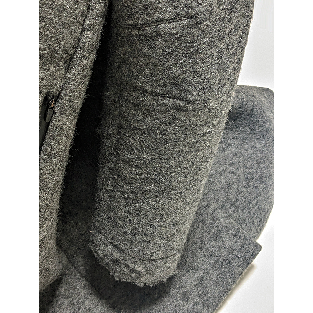 撥水加工が施されたウール素材、クッション地の様な厚さとハリ感のあるフェルト調ウール生地という感じです。