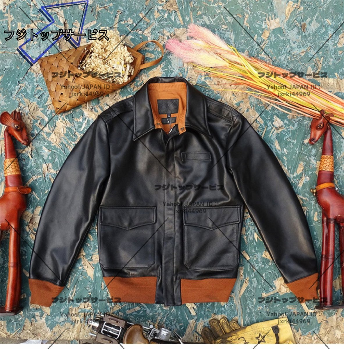 美品■メンズ 革ジャン TYPE A-2 茶芯 フライトジャケット 最上級 牛革 レザージャケット ライダース 本革 S~4XL 2色から選択可能