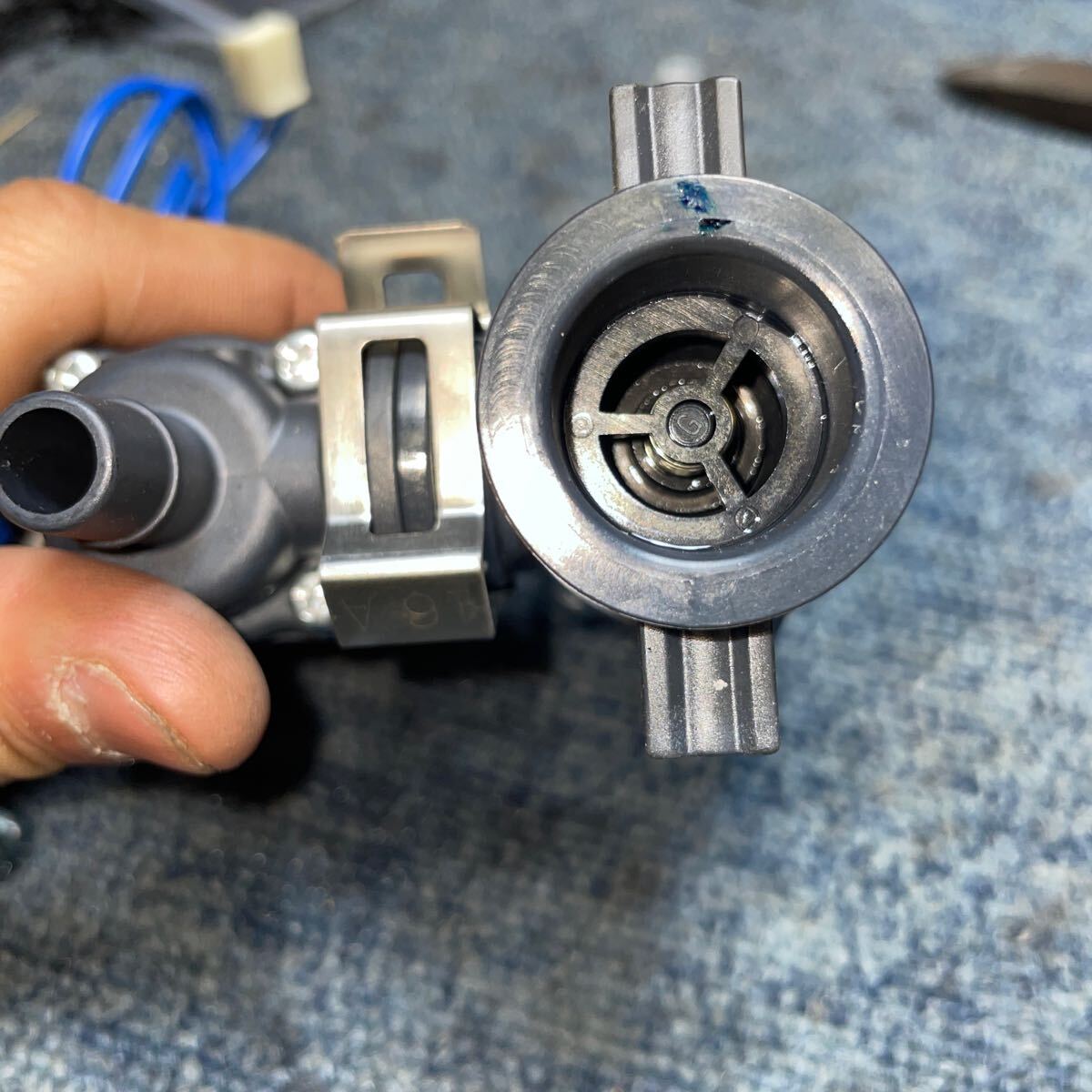 簡易的に電源に接続し電磁ポンプ(注湯弁)の電気的な動作を確認しました。 |