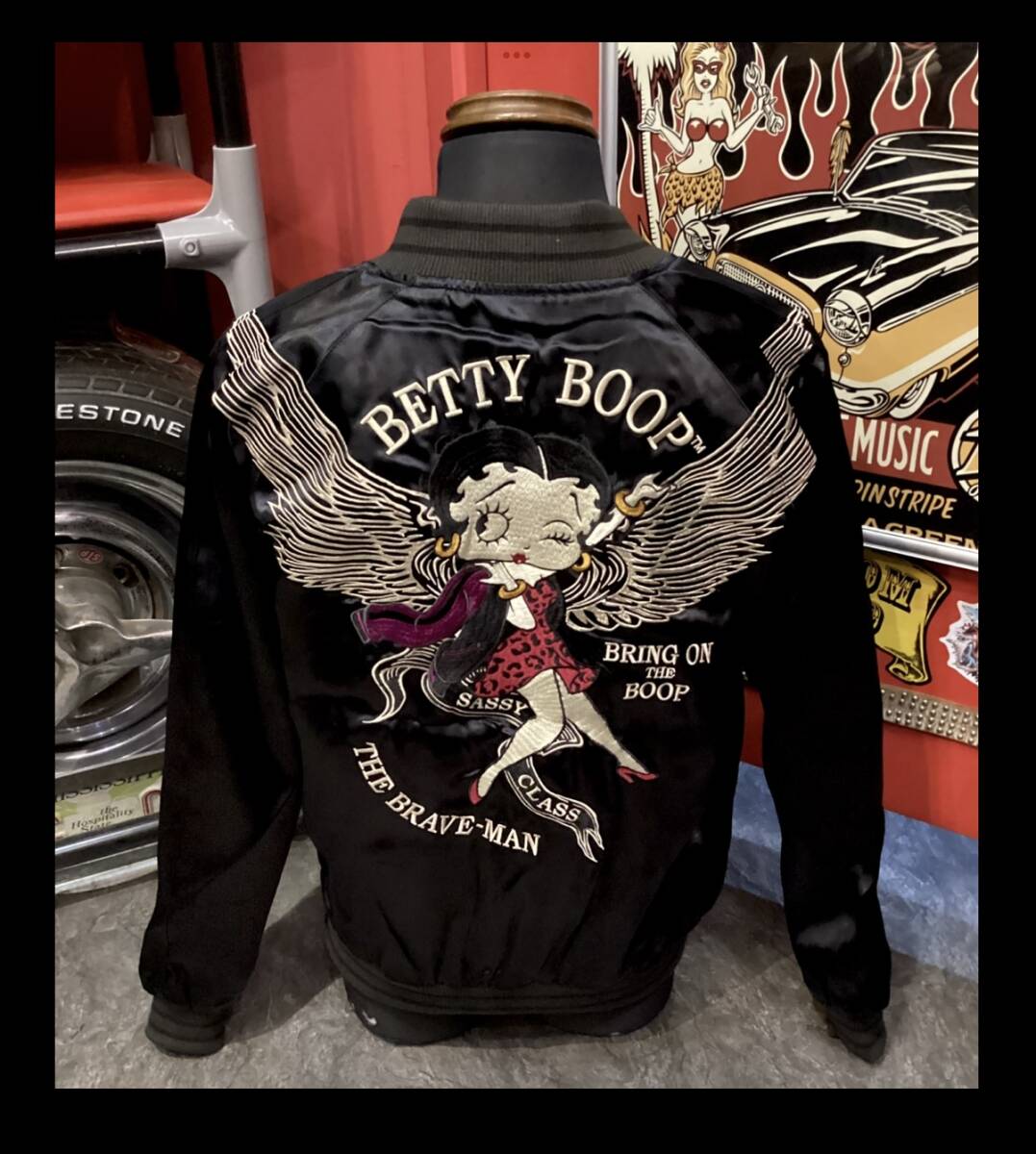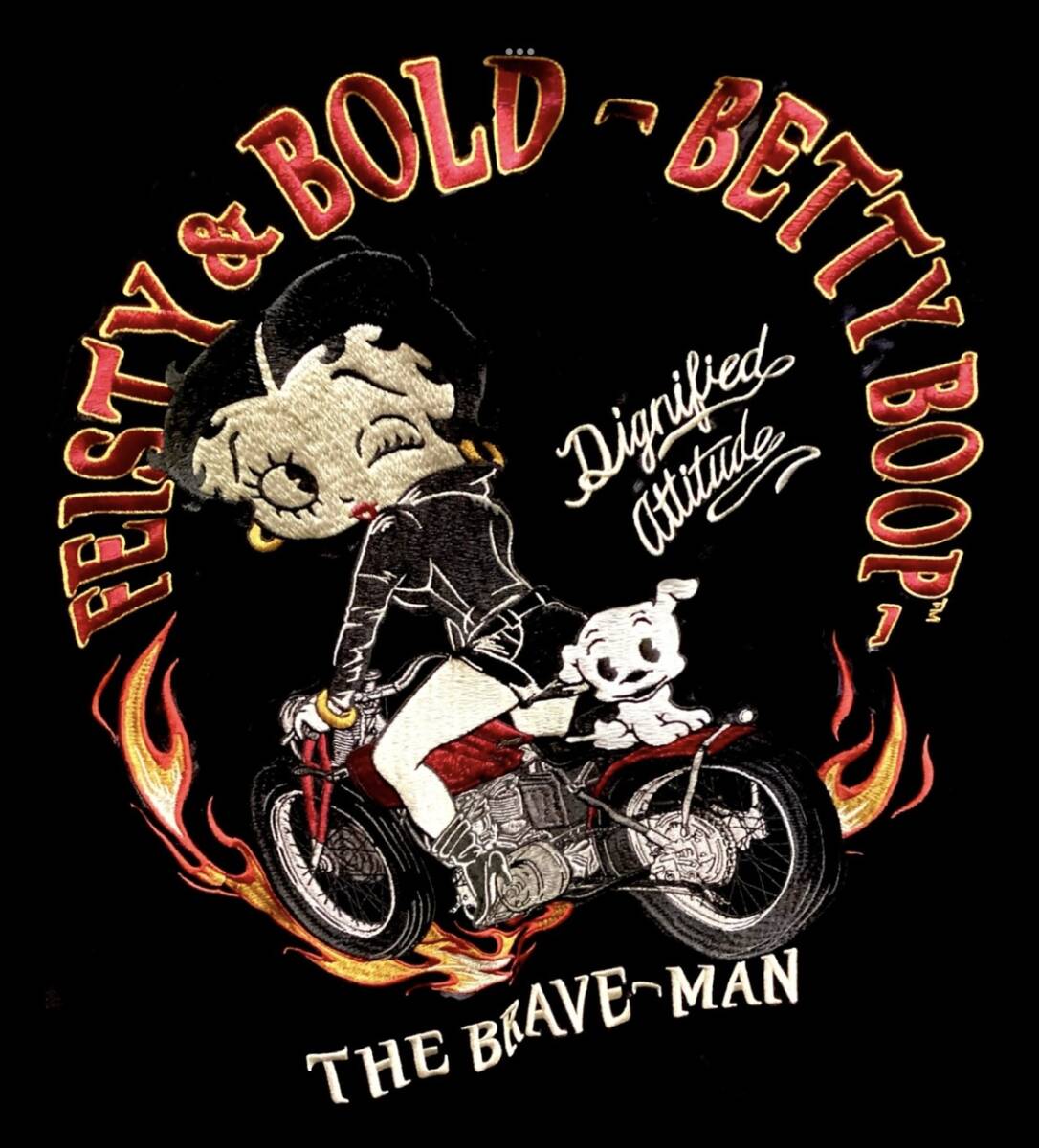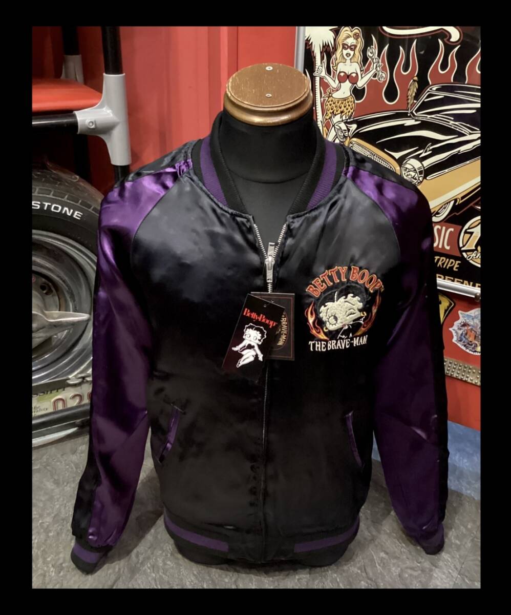 | ★ 世界で愛され続けるセクシーポップキャラクター「BETTY BOOP」から高級感ある上質レーヨン素材面とヘビーナイロン素材使用 MA-1タイプの両面ともに豪華刺繍デザインが施されたリバーシブルスカジャンです。タウンユースでもインパクトのあるデザインで バイカーには季節問わずの プレミアムアイテムです。