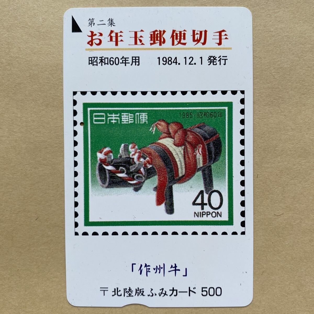 【使用済】 ふみカード 北陸版 お年玉郵便切手 昭和60年用 1984.12.1発行 「作州牛」