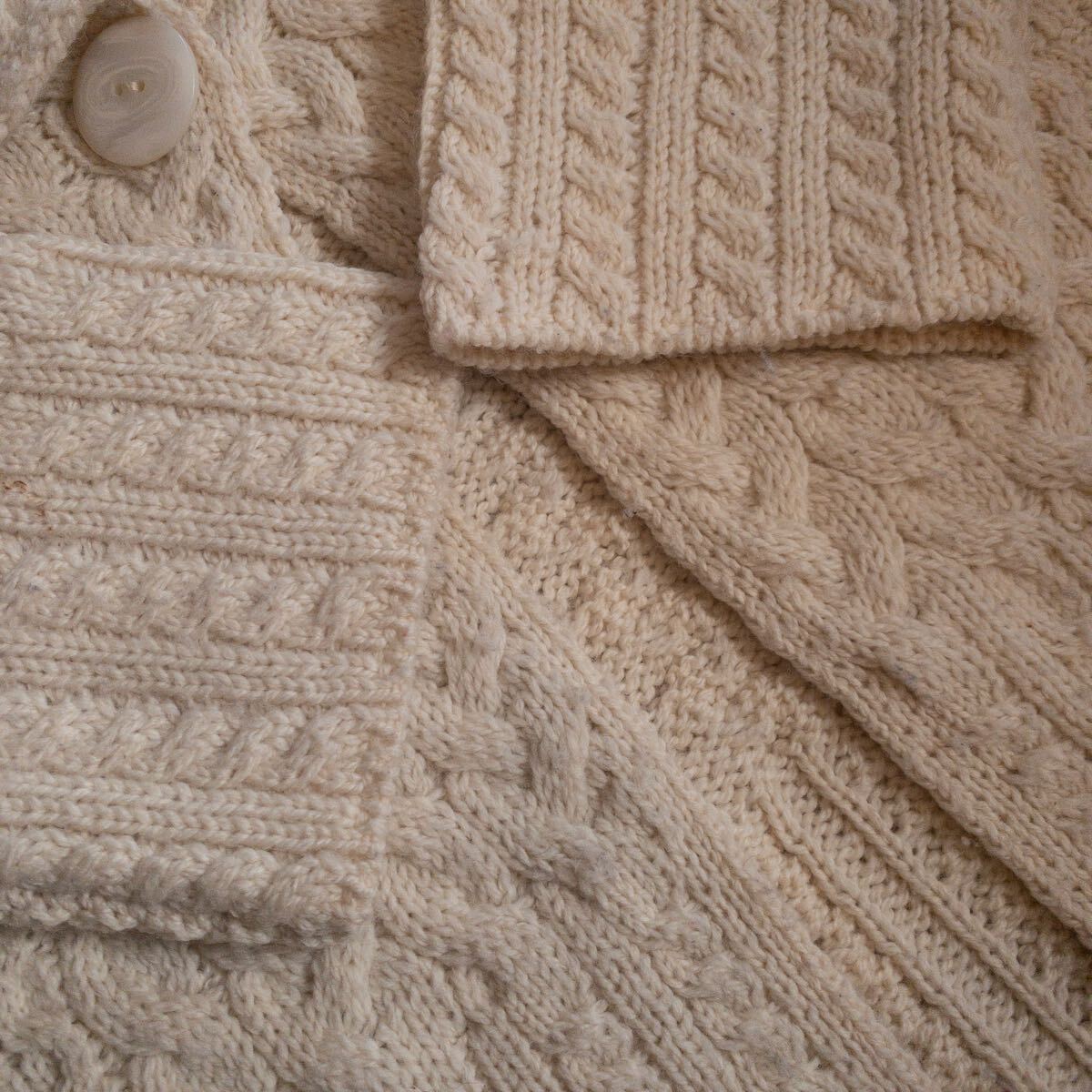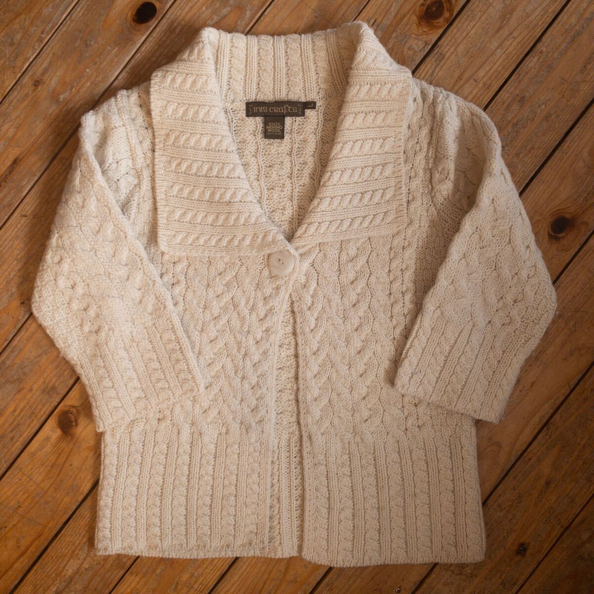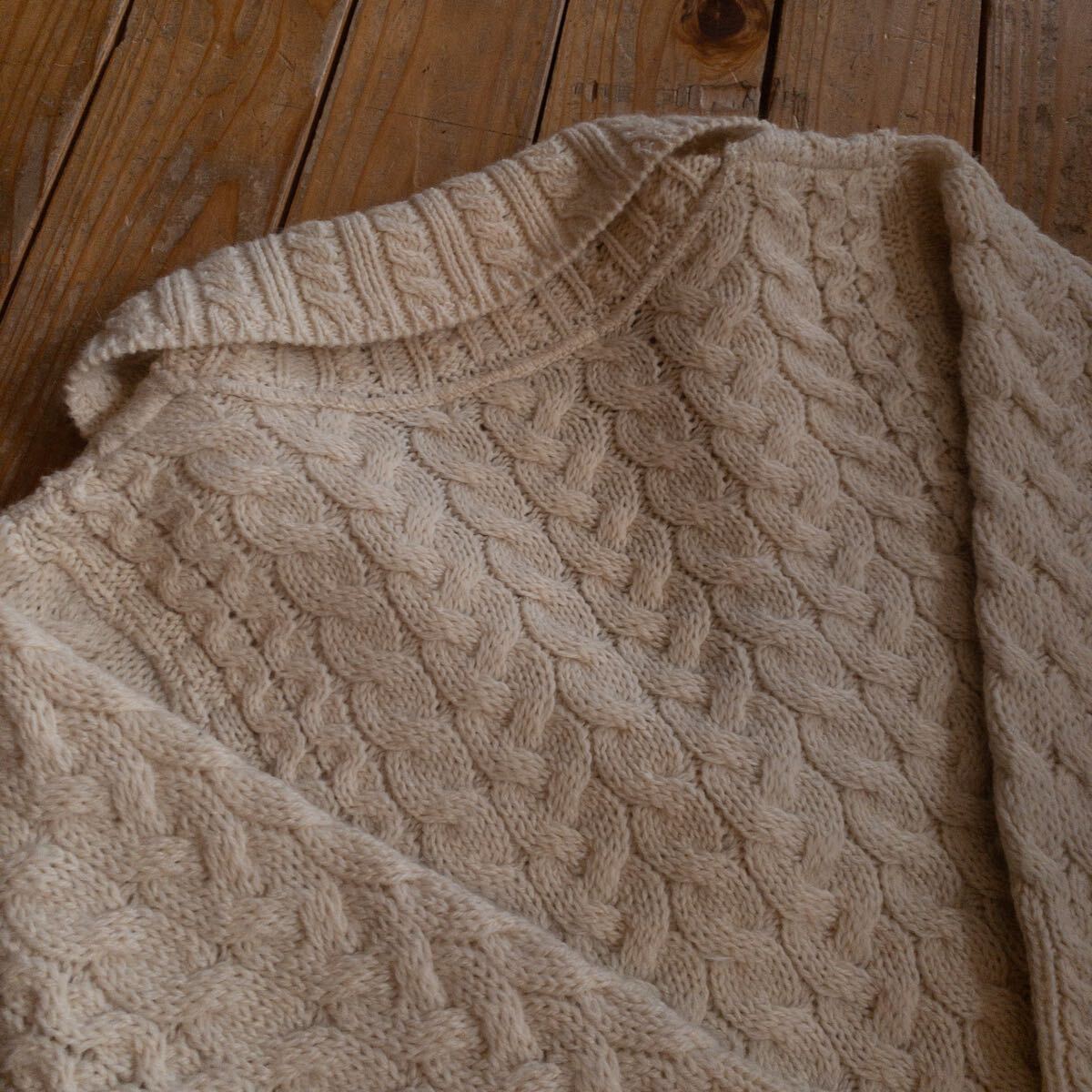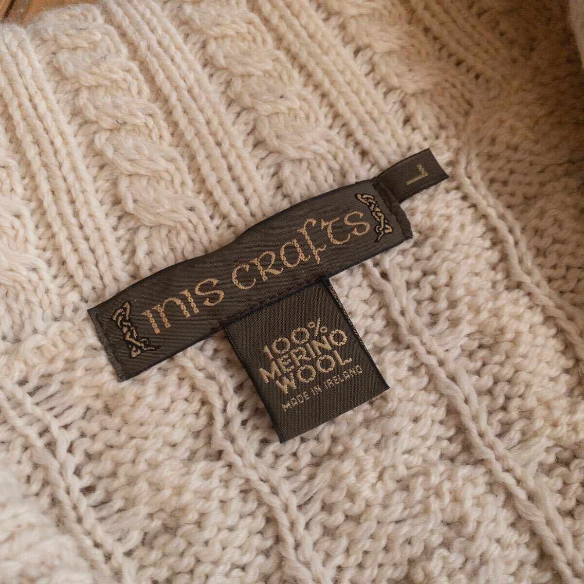 アメリカで購入したセカンドハンド(古着)の、イニスクラフト フィッシャーマンニットです。