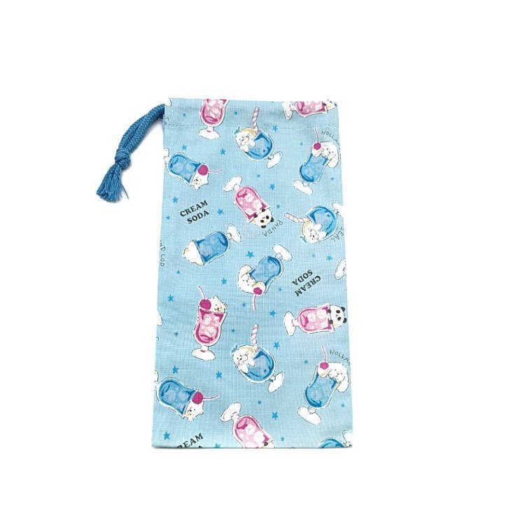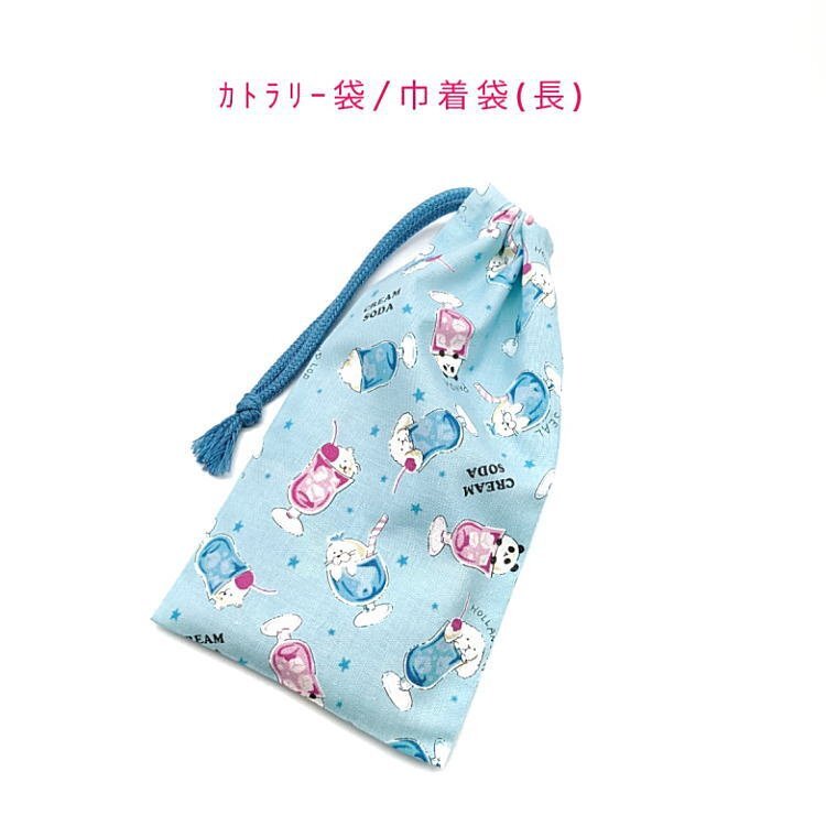 カトラリー袋・巾着袋 長方形【アニマルソーダ柄 ブルー】カトラリーケース 箸袋 はし袋 コップ袋 ポーチ パンダ クリームソーダ