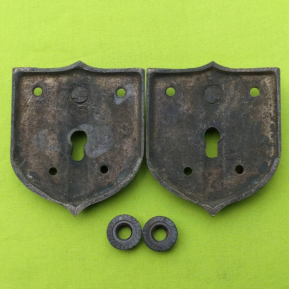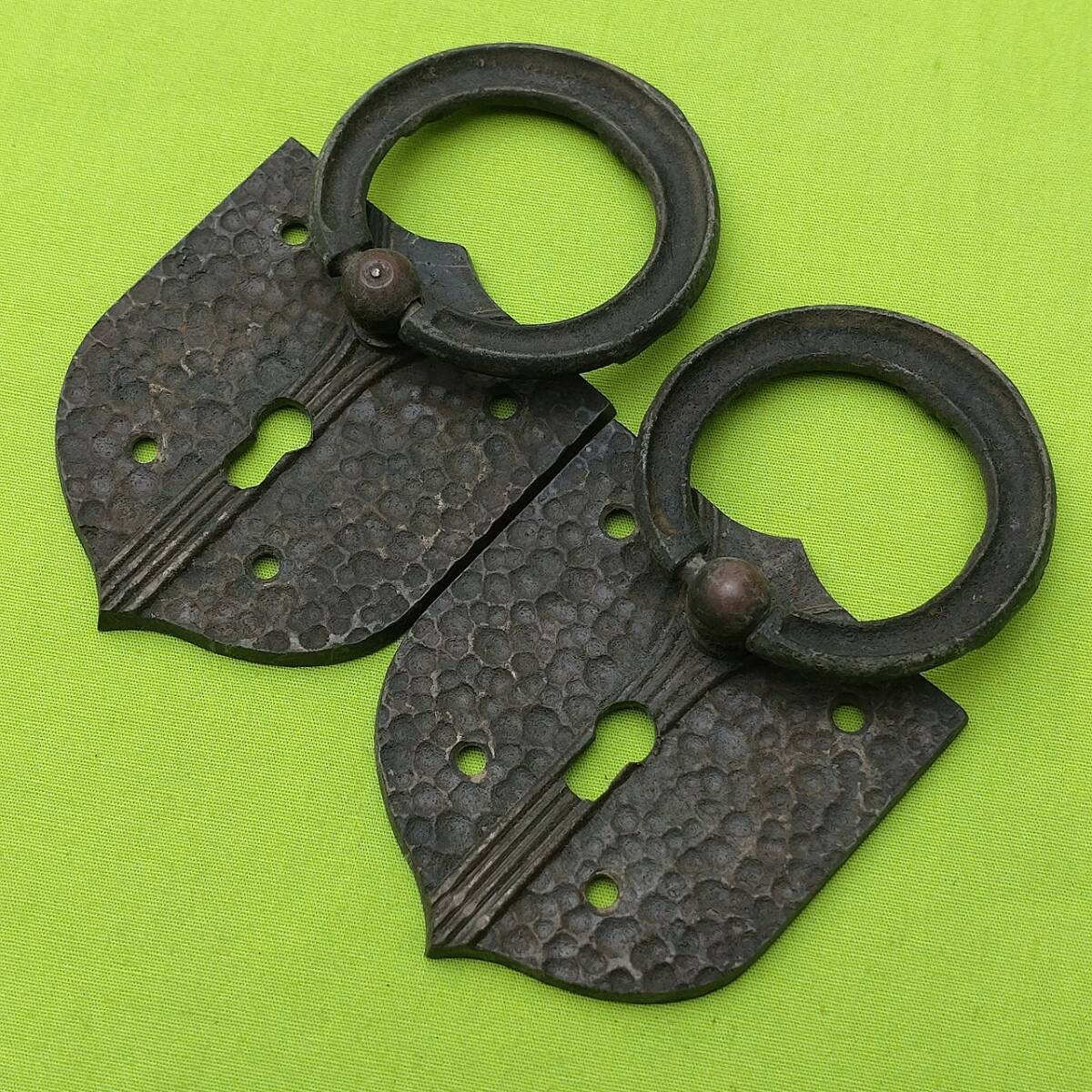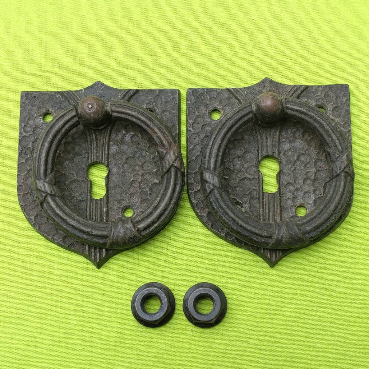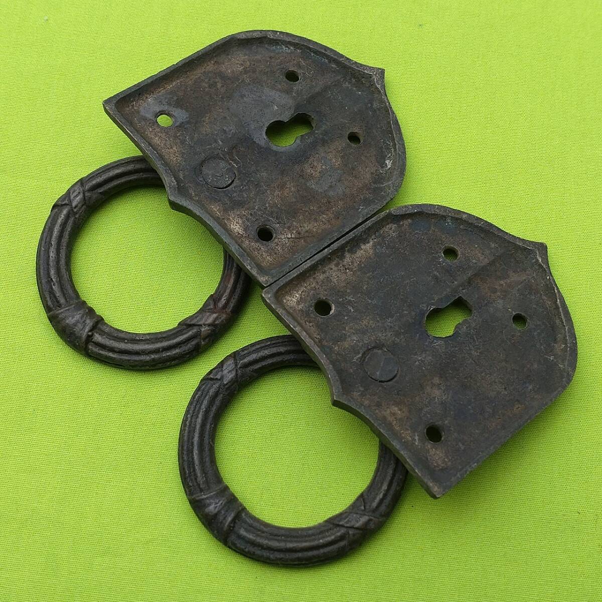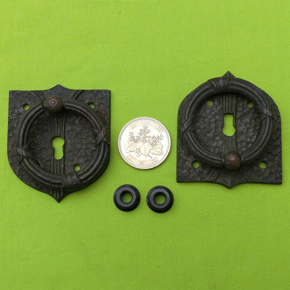古い家具の部品 2個 取っ手 金具 横幅約50㎜ 縦幅約60㎜ 古物 古民家 【5677】