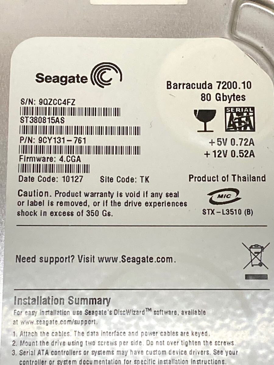 15点まとめ品 HDD Seagate シーゲート Barracuda 7200.10 ST380815AS 80GB 3.5インチ YO4