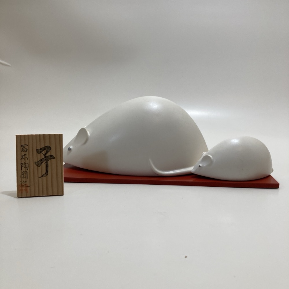 常滑焼 干支 置物 子 ネズミ 鼠 縁起物 正月 レトロ★K2932T4