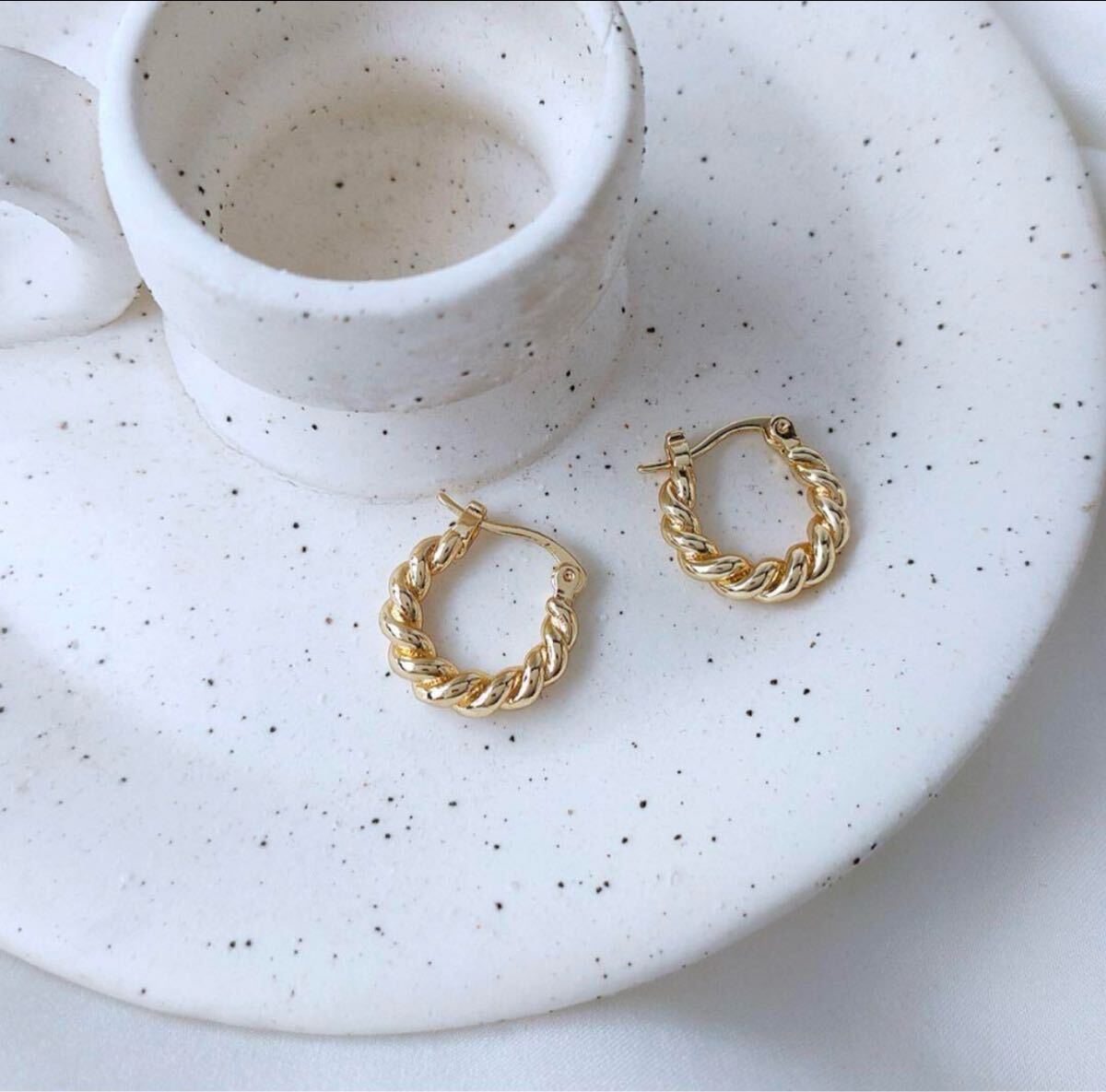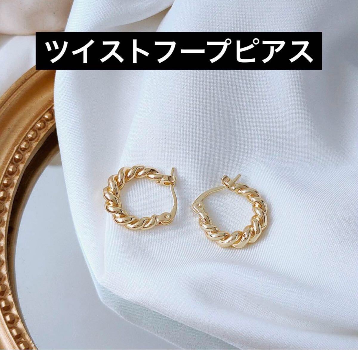 フープピアス/ゴールド/ねじれ/シンプル/キラキラ /輝き/イヤリング/かわいい/可愛い/カワイイ/上品/ゴージャス/華奢/おしゃれ/韓国風/アレルギー対応/銅/14Kメッキ