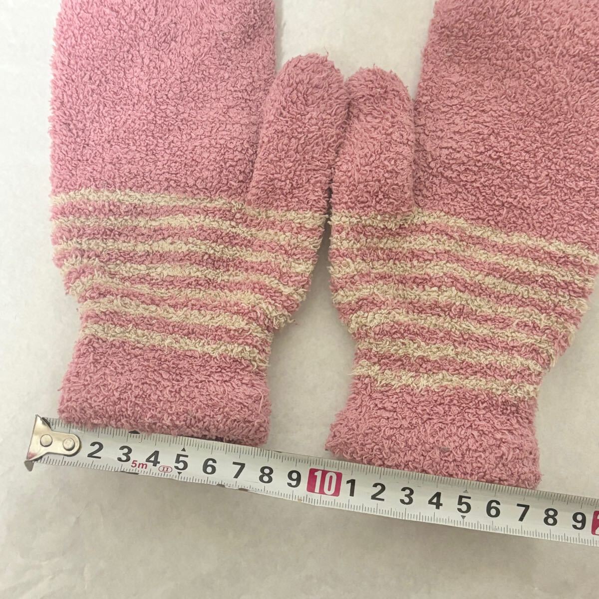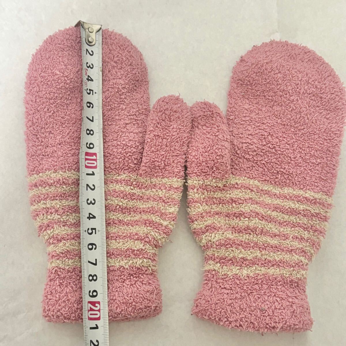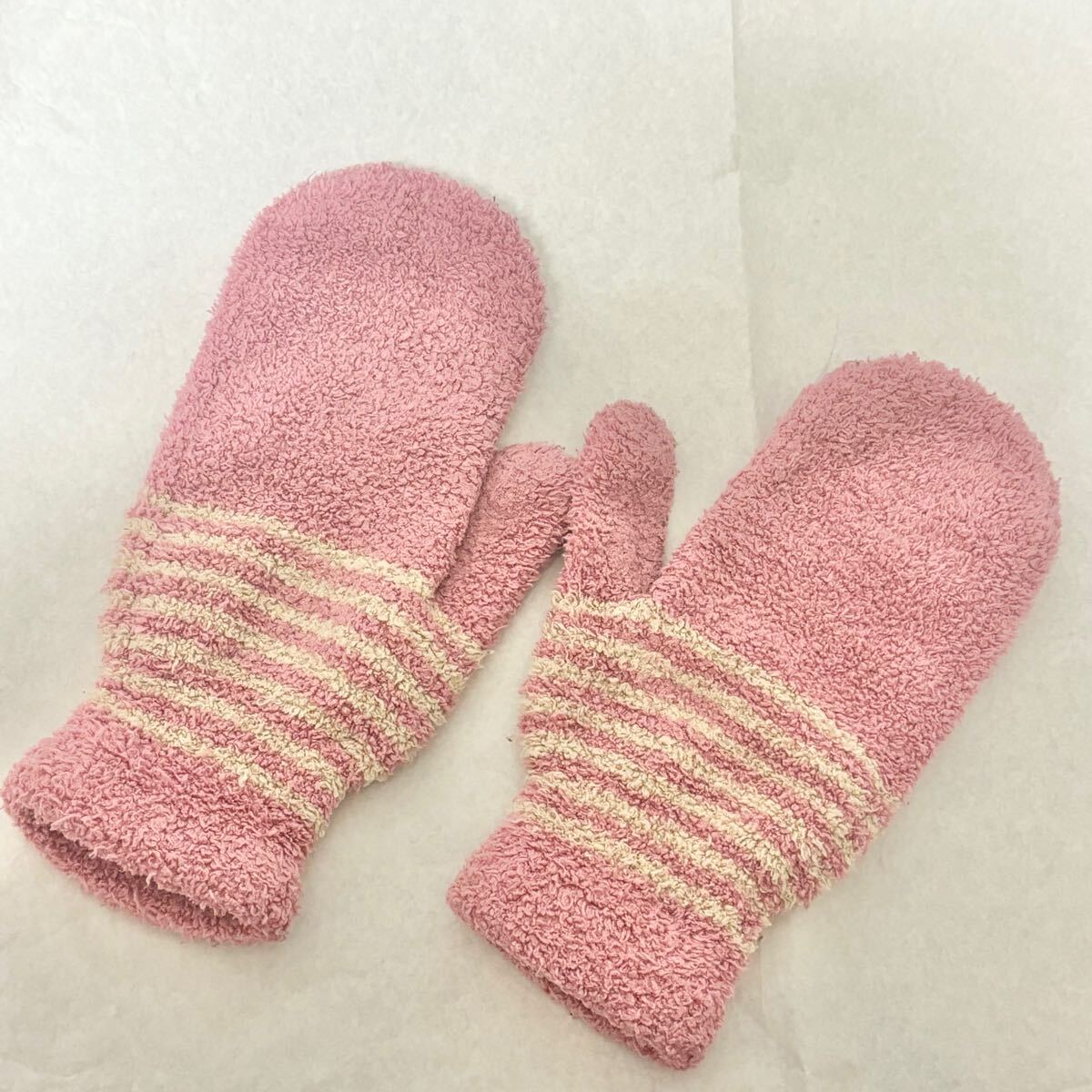 ピンク色のミトン型手袋です。