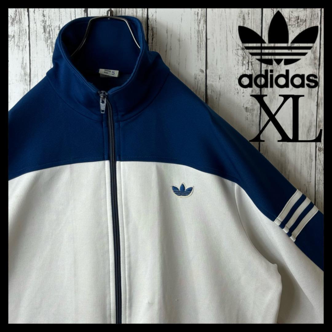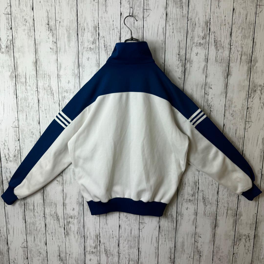 【アユニD着用】アディダス デサント トラックジャケット ジャージ 5号 ボーダー 青 ネイビー 白 XL ホワイト ブルー