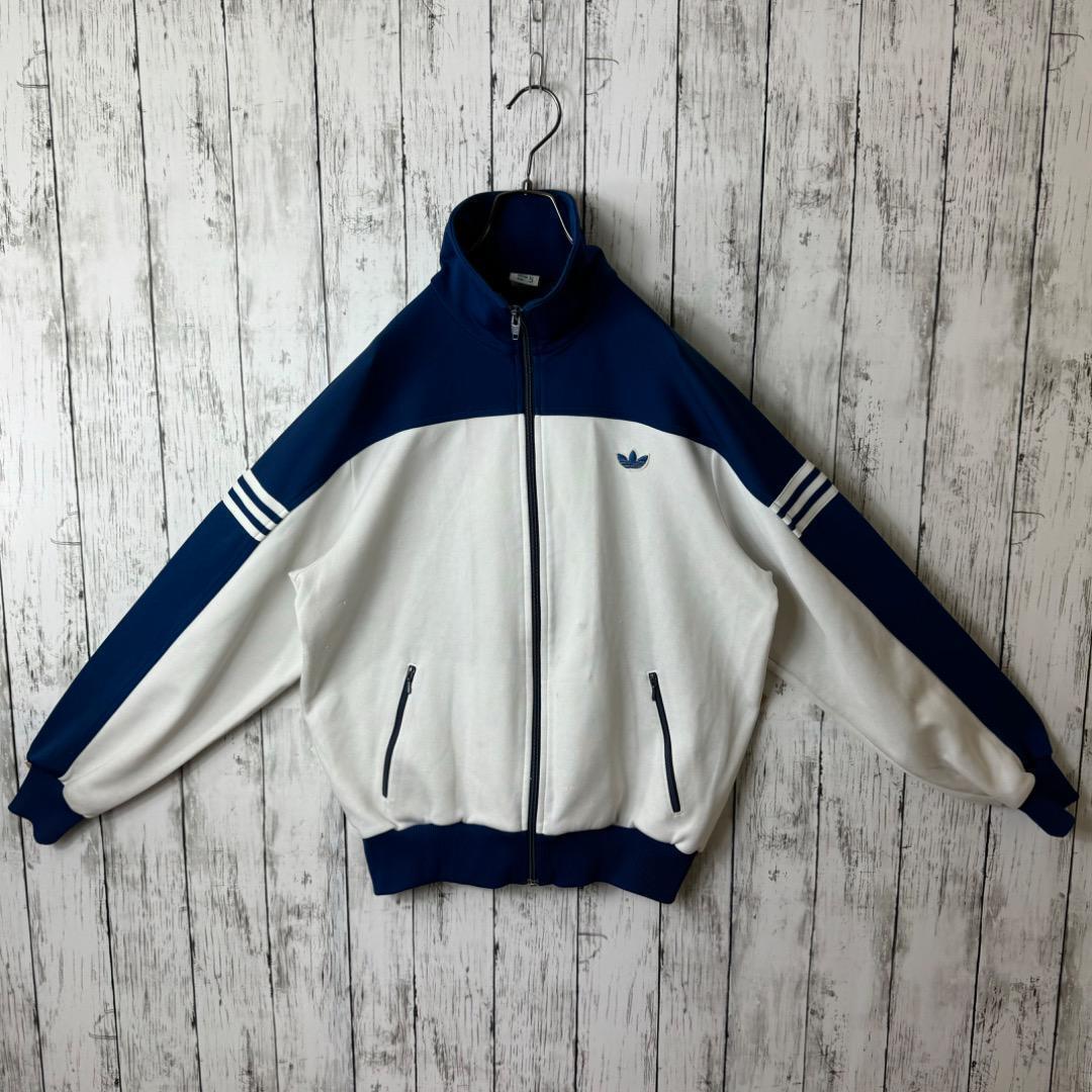 流通量が圧倒的に少ないデサント 西ドイツ製のアディダスのヴィンテージトラックジャケット。ヴィンテージ感溢れるハイネックのデザインやプチ トレフォイルロゴに、さわやかなカラーリングが映える激レアな一着です。古着好きにはたまらないハイネックで、折り返して着ると全く別の印象で着用いただけるコスパ◎なデザインです。メンズXLサイズ相当の5号で男女問わずオーバーサイズでの着用もおすすめ。Bish ビッシュのアユニ・D さん着用モデルとして人気急上昇中のモデルです。