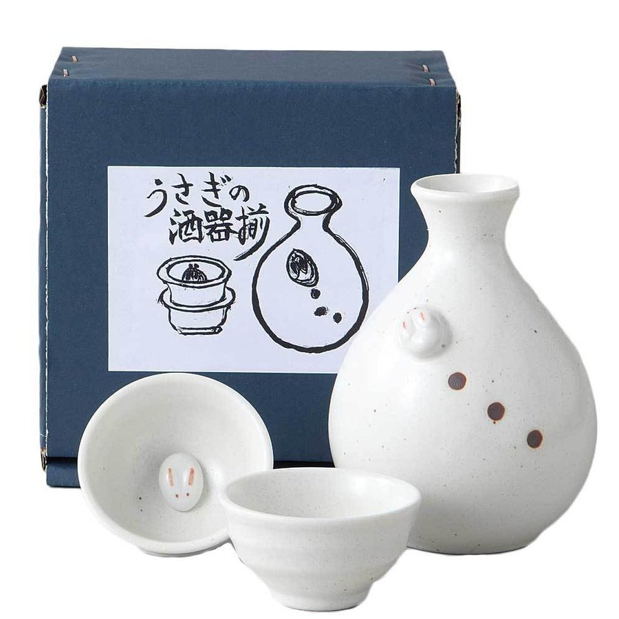 美濃焼! ☆雪うさぎ・酒器揃☆ V4057-8 新品 ぐい呑 サカズキ 盃 杯 徳利 酒注ぎ ギフト
