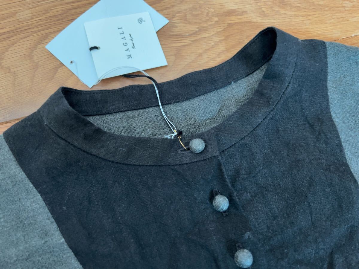 ・人気ブランド、マガリ MAGALI の切り替えデザイン リネン ワンピース(ドレス、チュニック)です。新品タグ付きのお品です。定価31,900円のお品。 ・お色は落ち着いたグレー。黒リネンの切り替えと、フロントに並んだ小さなくるみボタンが、愛嬌のある表情を見せてくれます。たっぷりと生地を使用していますが、生地の柔らかさで落ち感を出し、ボリュームが出すぎることを抑えています。起毛させたベルギーリネンはふわっとあったか。シンプルでありながら、その穏やかな可愛らしさが見る人の記憶に残るワンピースです。 ・ナチュラル感がありながらも肌触りの良い柔らかさも兼ね備えておりとても上品。一枚でも重ね着でもスリーシーズン活躍してくれます。 ・大人気完売モデルですので、ファンの方、お探しだった方もこの機会に是非どうぞ♪ ・他にもMAGALI、レディスファッション出品中です。是非ご覧くださいませ。 サイズ:フリー(肩幅61.5cm、身幅49cm、着丈117cm、素人採寸ですので誤差はご容赦ください) 素材:麻100% ☆基本的に素人保管ですので、その他見逃し、細かい点など気になるような神経質な方は入札をお控えくださいませ。ノークレーム・ノーリターンでお願い致します。その代わり商品についてのご質問はどんどんお問い合わせ下さい。 ★定形外の発送は週2回程度で、少々お時間をいただきます。ご了承いただける方のみご選択ください。 |