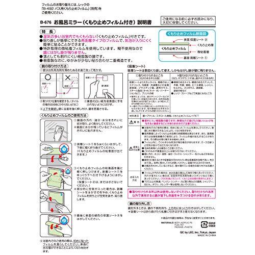 「レック お風呂ミラー くもり止め フィルム付き ( 曇り止め 鏡 ) ホワイト S (17×22cm) B-676」▼4903320727663▼(商品説明)シンプル・ホワイト S (17×22cm) B-676・・Size:S (17×22cm)・サイズ:17×0.6×22cm(本体)15×0.1×20cm(フィルム)・取付方法:吸着シート・湿気の多い浴室内でもくもらない「くもり止めフィルム」付き。・貼り直しが簡単にできる再剥離タイプのフィルムで、気泡が入りにくく、簡単に貼ることができる。・糊不使用なので、鏡にはがし跡が残らない。説明 商品紹介 湿気の多い浴室内でもくもらない「くもり止めフィルム」付き。 より ●落としても割れにくい樹脂製のミラー ●ゆがみが少ない貼り合わせ二重構造 ●貼りかえられる「くもり止めフィルム」付でお風呂でもくもらない ●くもり止めは約1年持続する。がなくなったら別売の「レック バス用くもり止めフィルム B-492」をご使用ください
