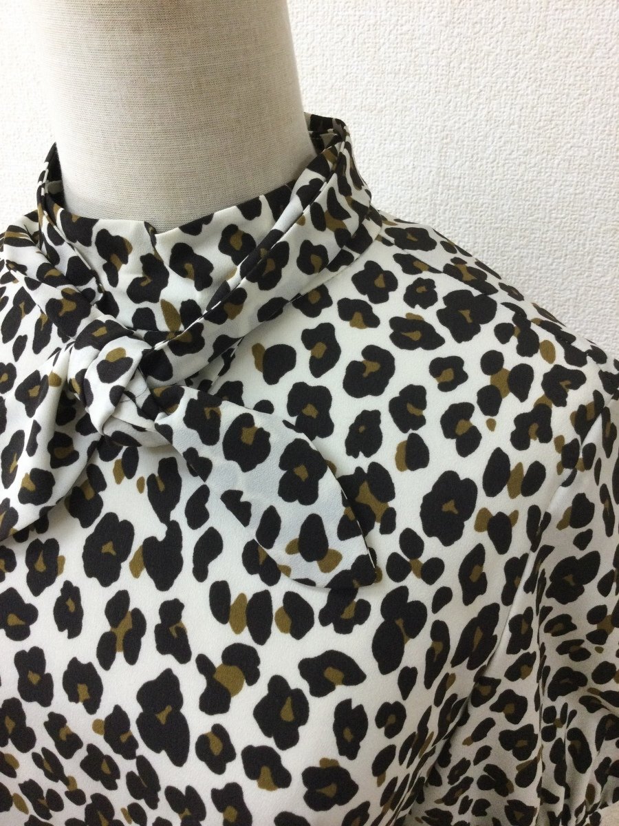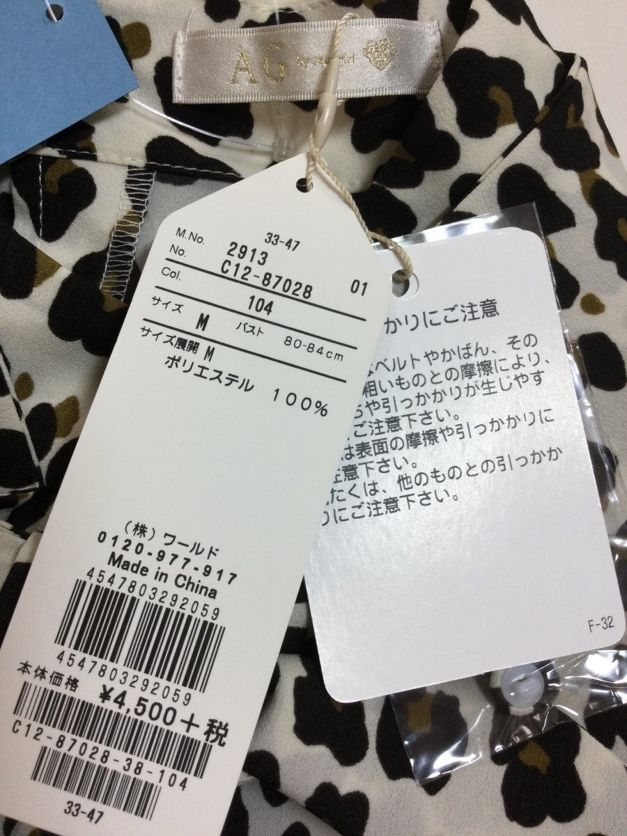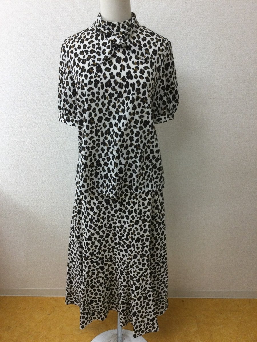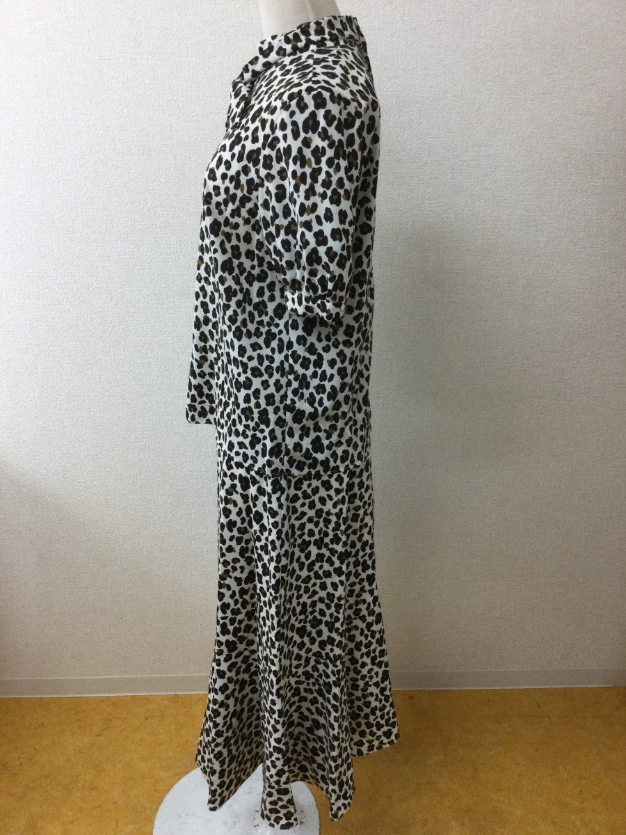 管理番号:10^135626 AG by アクアガール タグ付き未使用 アイボリーに茶のアニマル柄 ブラウスとスカートセット スカートウエストゴム 表示サイズ:上下ともM 実寸(参考)