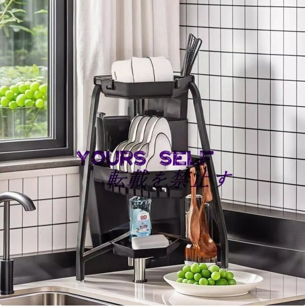 充実の付属品 /材料:(ダブルレイヤー/基本バージョンアクセサリ:シンク/棚*1、ボウルラック*2、洗剤ラック*1、箸立て*1、フック*4)これらの構成要素の全ては調整や、取り外し易ク、お手入れも便利。耐蝕性抜群!表面には焼付け塗装をされて錆びにくくて防水性が優れて長時間にお使えます。