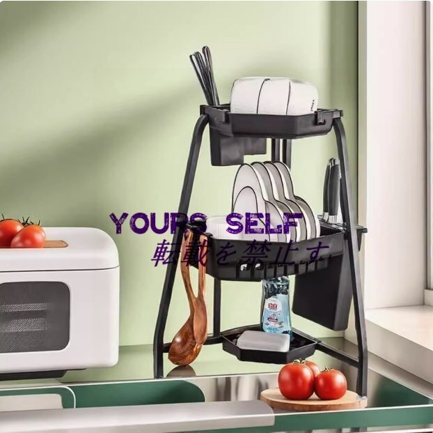 多機能キッチン水切りラック:食器も調理器具もすべてキレイに乾かします。この食器水切りラックには、色々な物を置くことができます:ボウル/皿、野菜/果物、調理用ナイフ/まな板/スプーン&フォーク/洗剤(ホルダー)、おたま/フライ返し/ふきん(フック)大きなキッチンだけでなく小さなキッチンにもピッタリなキッチン収納オーガナイザー兼スペースセーバー。