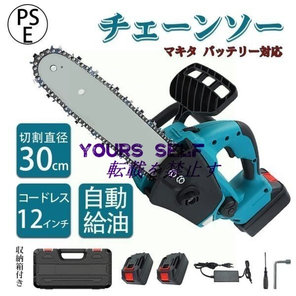 12インチ充電式チェーンソー コードレス マキタ 30cm切段 チェーンとバッテリー付き 収納ボックス 軽量 強力 枝切り 伐採 WJGJ309