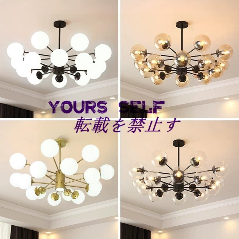 品質保証☆10灯ペンダントライト新品シャンデリアLEDランプ天井照明器具シーリングライト 茶色ライトカバー  北欧 LED電球付