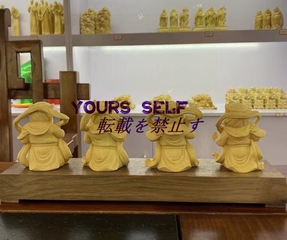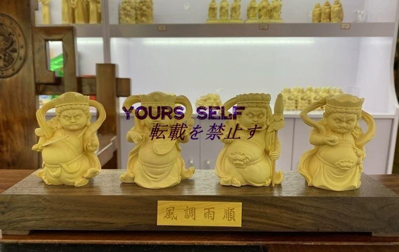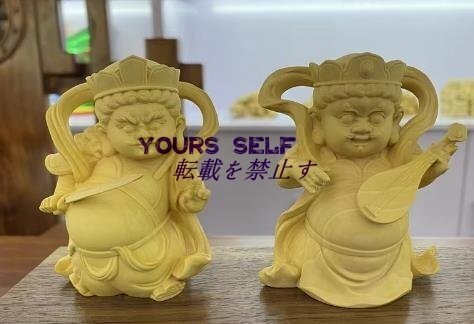 【四天王像 ミニ 可愛い】柘植の木 真言宗 木彫仏教 仏像フィギュア(高さ12.5cm)
