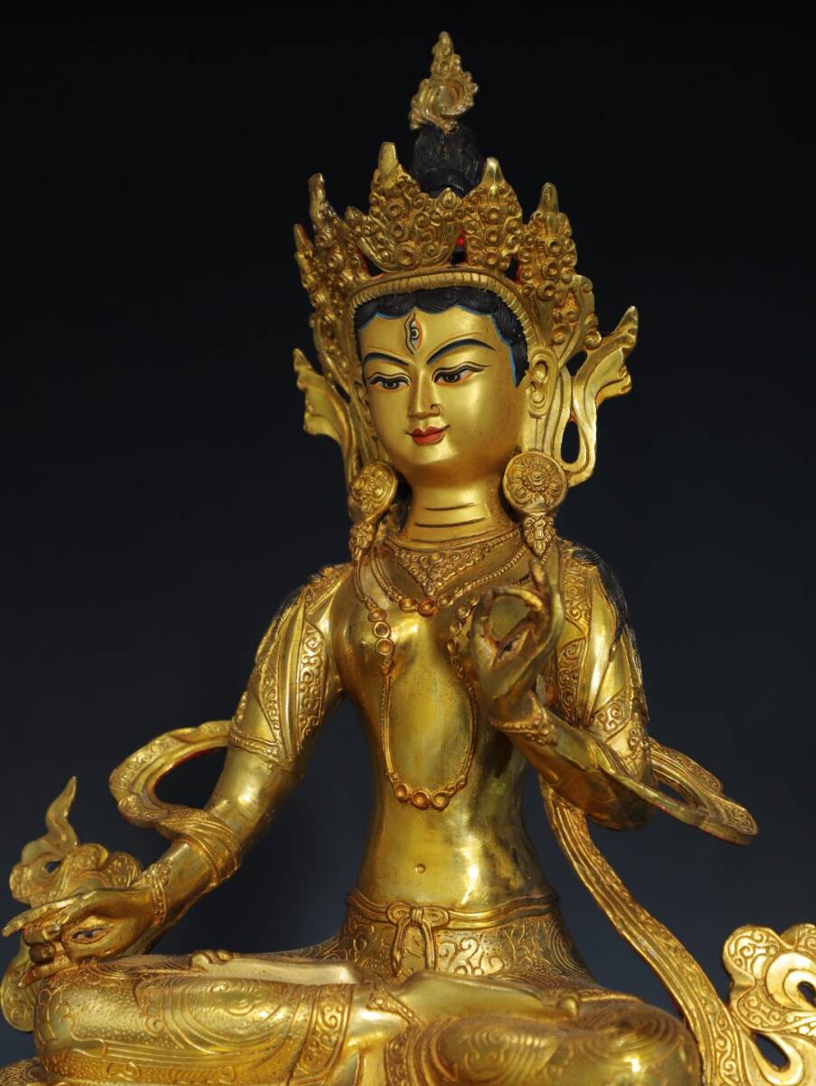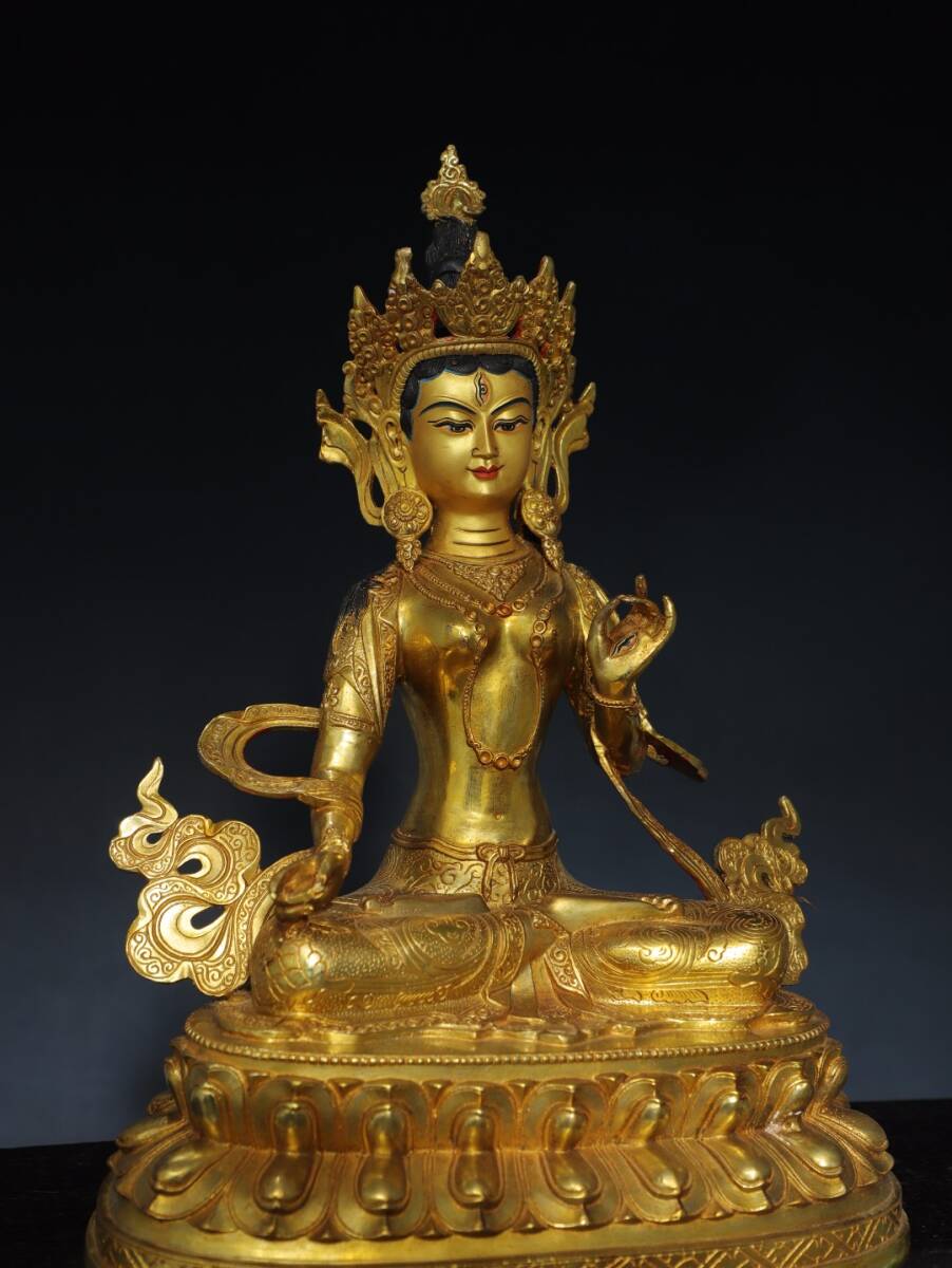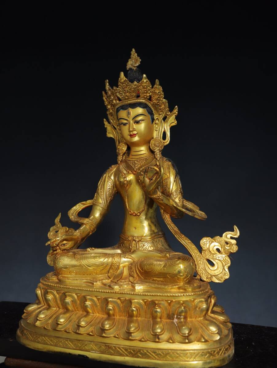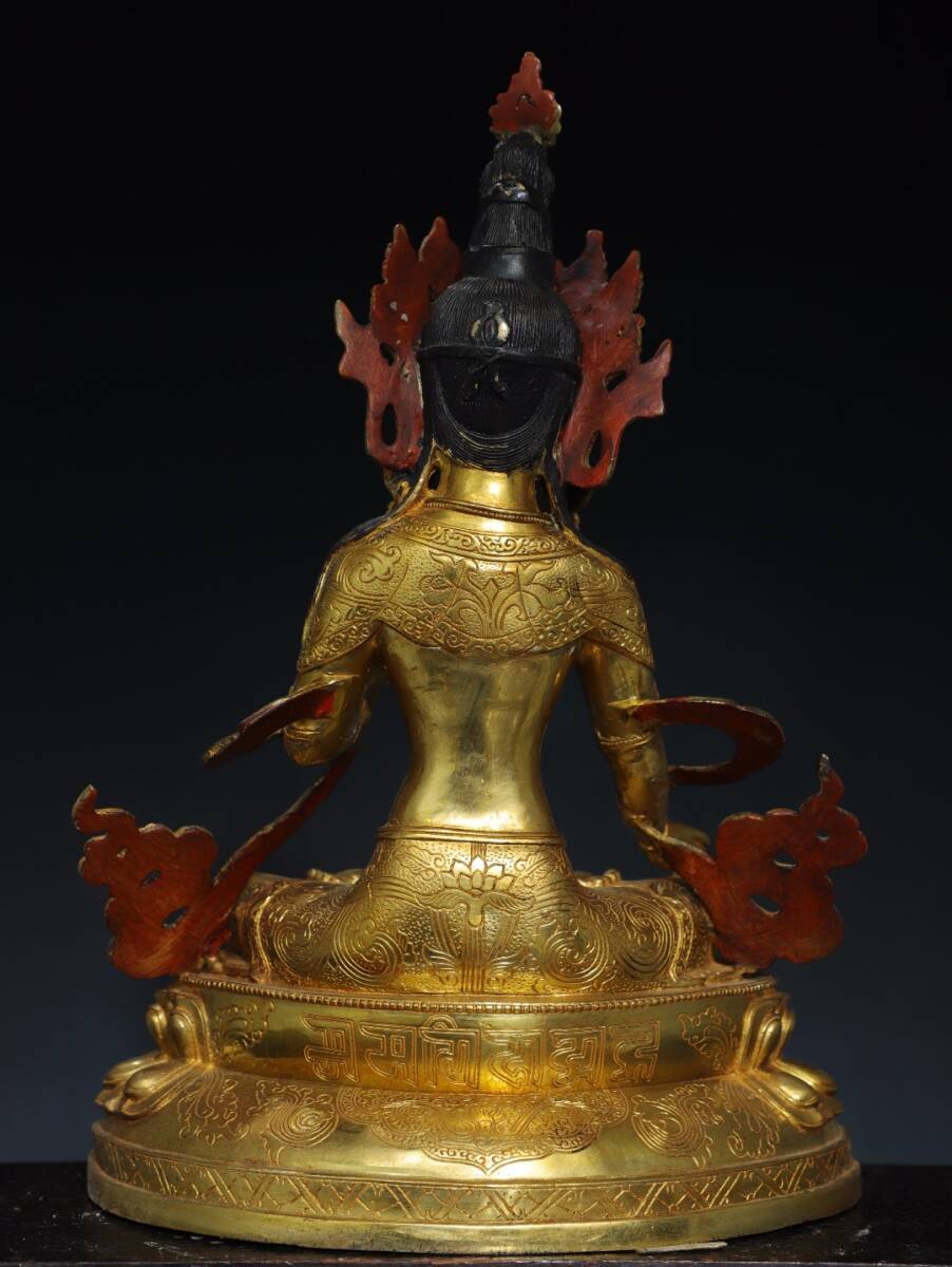 旧蔵 清 銅塗金画彩【度母】 仏像 奉納されていた 供養品 銅製品 銅器 極細工 中国古玩 古美術 骨董品 201-13