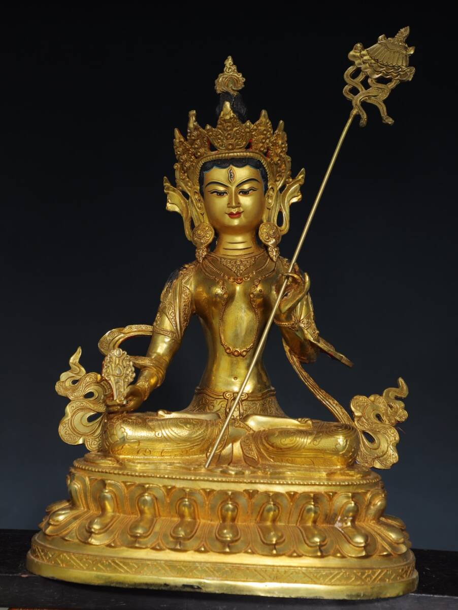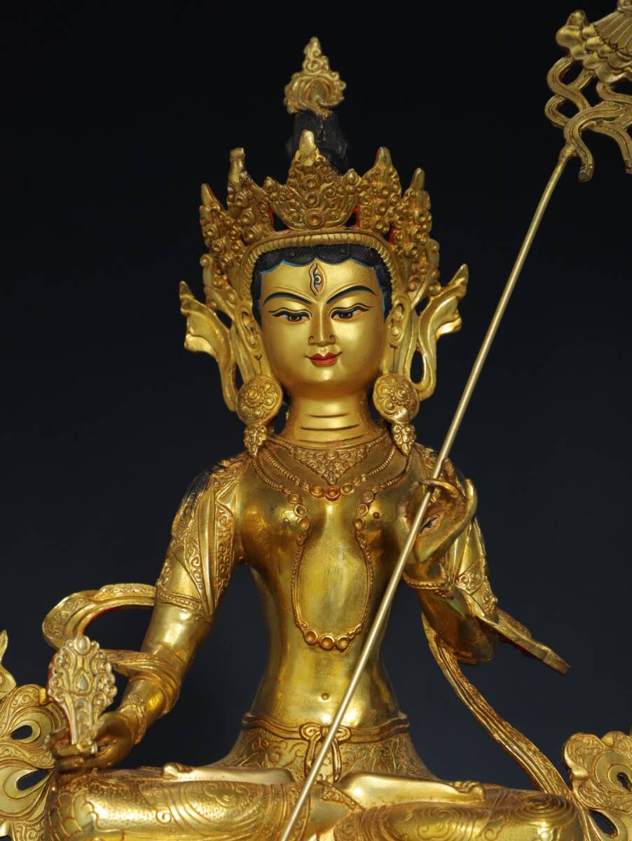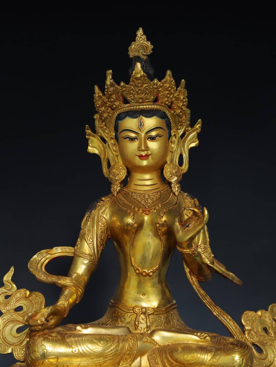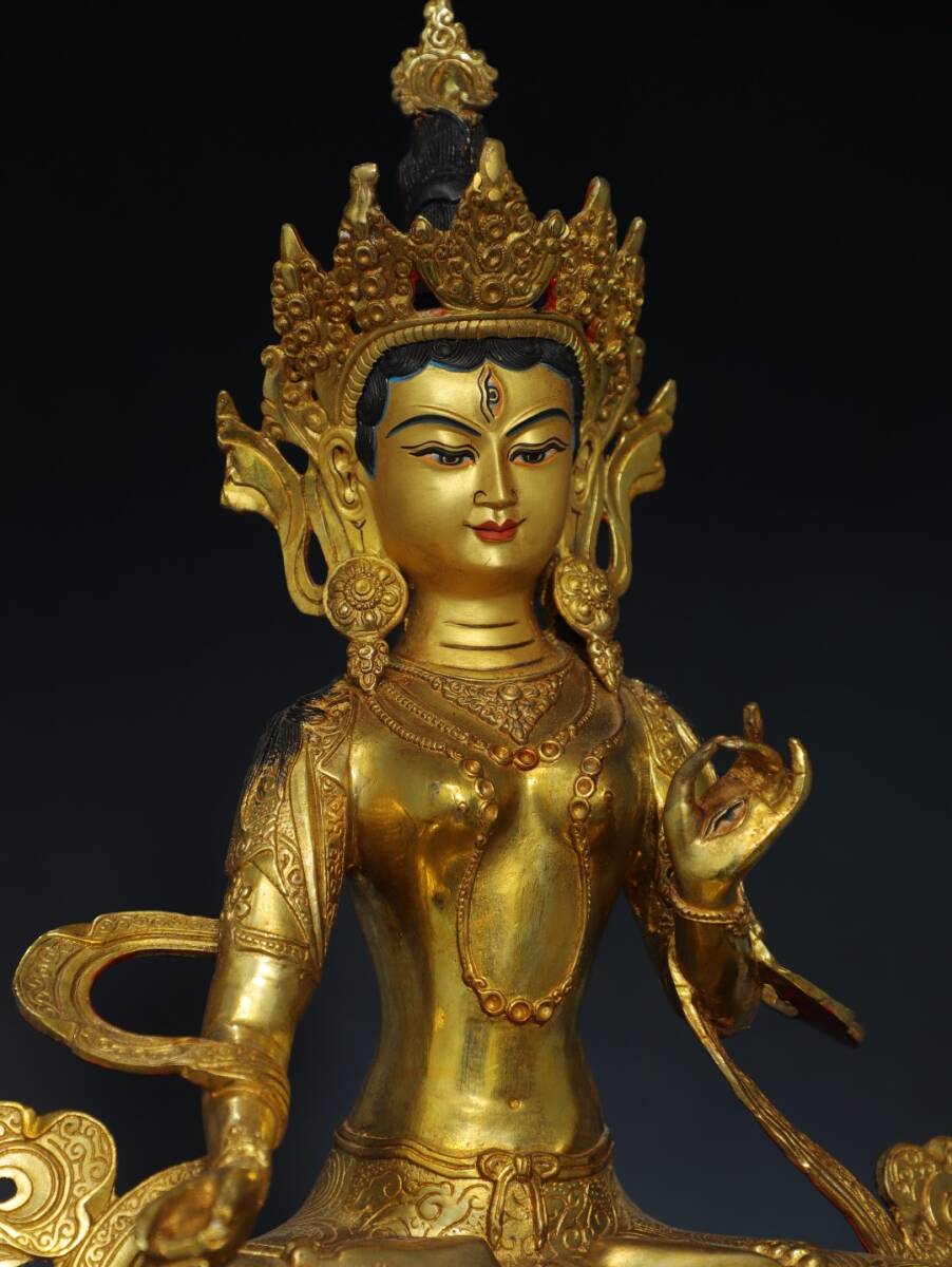 旧蔵 清 銅塗金画彩【度母】 仏像 奉納されていた 供養品 銅製品 銅器 極細工 中国古玩 古美術 骨董品 201-13
